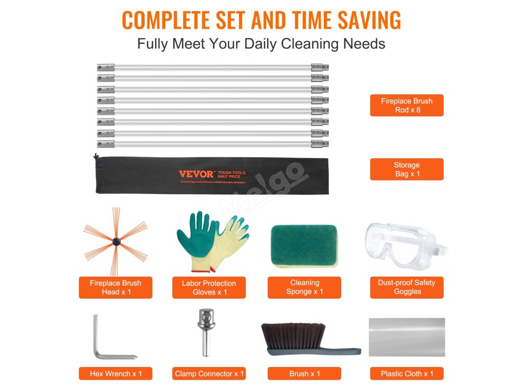 Pomocník na čištění komínů VEVOR vám usnadní čištění. Ve srovnání s běžnými sadami je naše sada na čištění komínů robustnější a odolnější, což snižuje vaše náklady na údržbu.