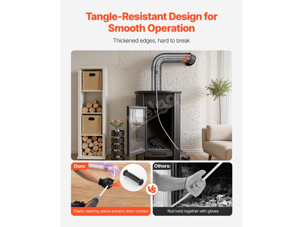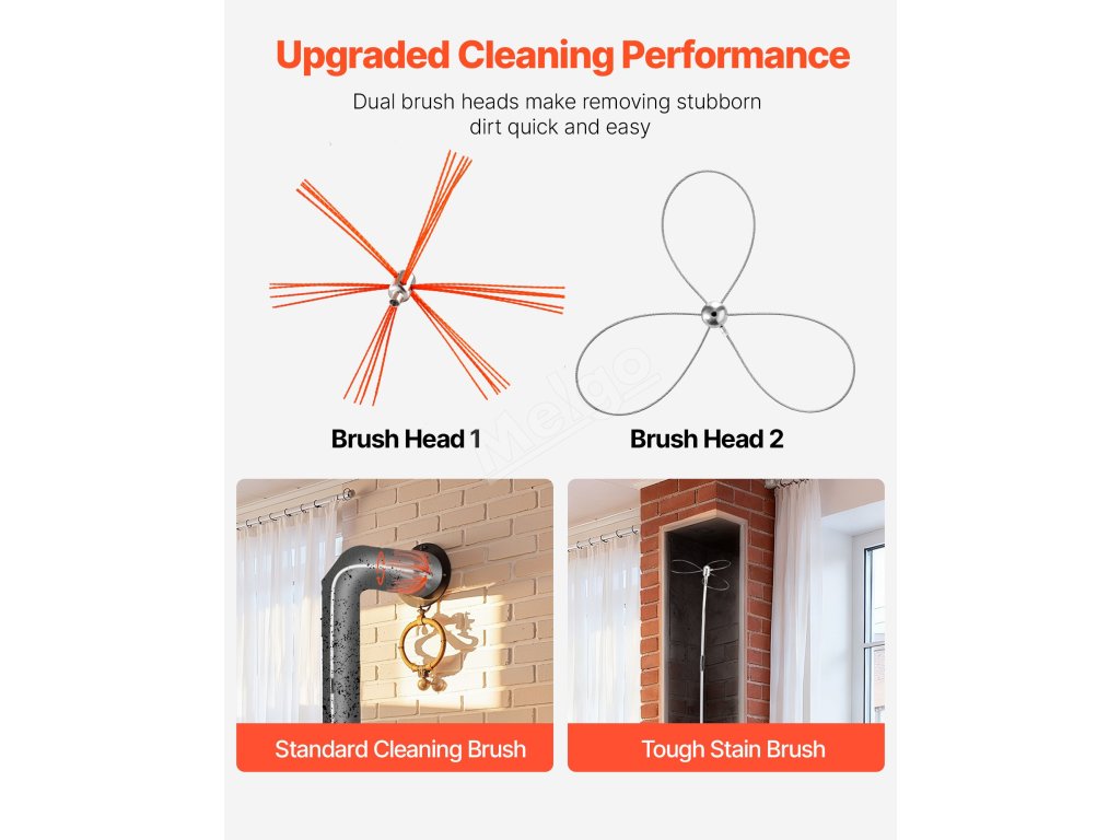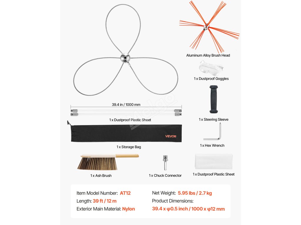 S touto sadou na čištění komínů s dvojitými kartáči, vylepšenými kartáči z hliníkové slitiny a plastovým pouzdrem pro větší bezpečnost budete mít vše, co potřebujete. Díky maximálnímu dosahu 39 stop/12 m je čištění těžko přístupných komínů s touto sadou hračkou.