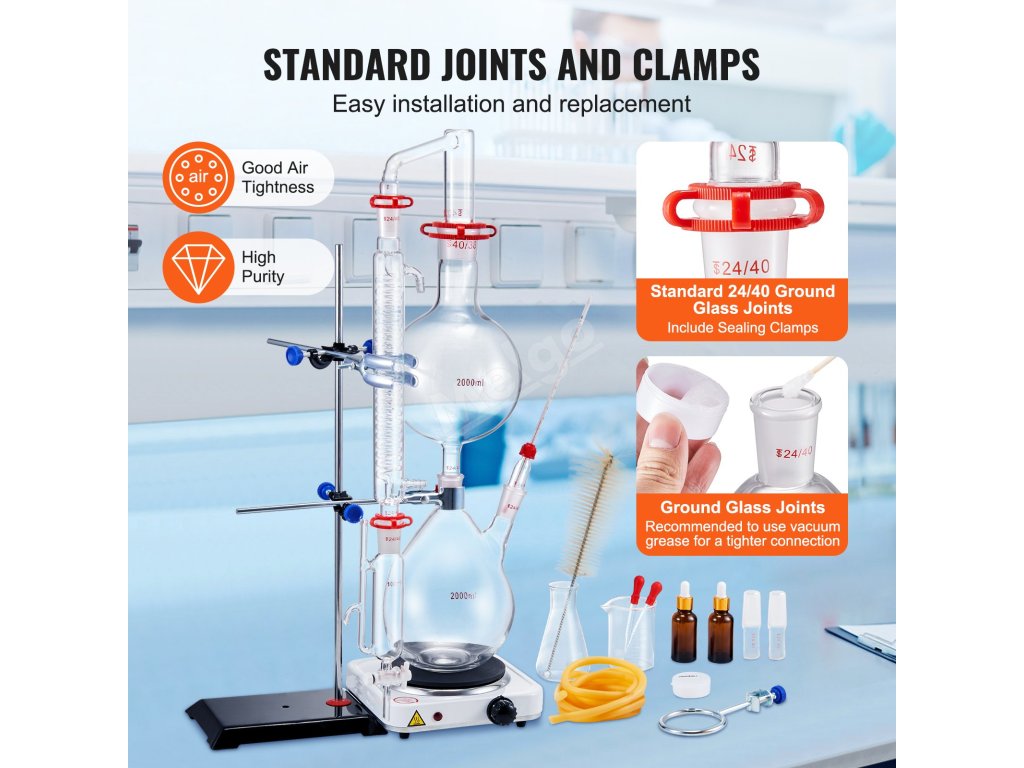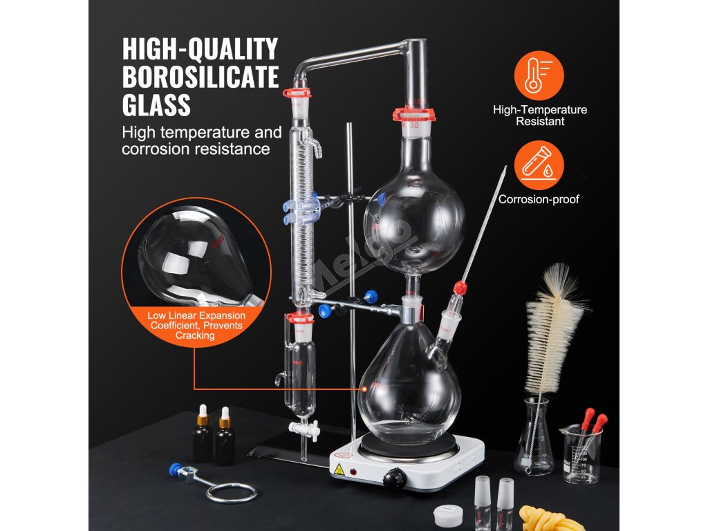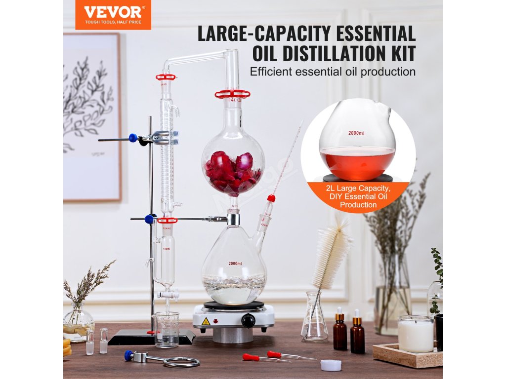 Zvyšte úroveň extrakce esenciálních olejů pomocí destilačního přístroje VEVOR. Je vyroben z odolného borosilikátového skla 3.3 a zaručuje dlouhou životnost a spolehlivost. Vyznačuje se také vysokou teplotní a korozní odolností, což zaručuje efektivní experimenty a jisté výsledky!