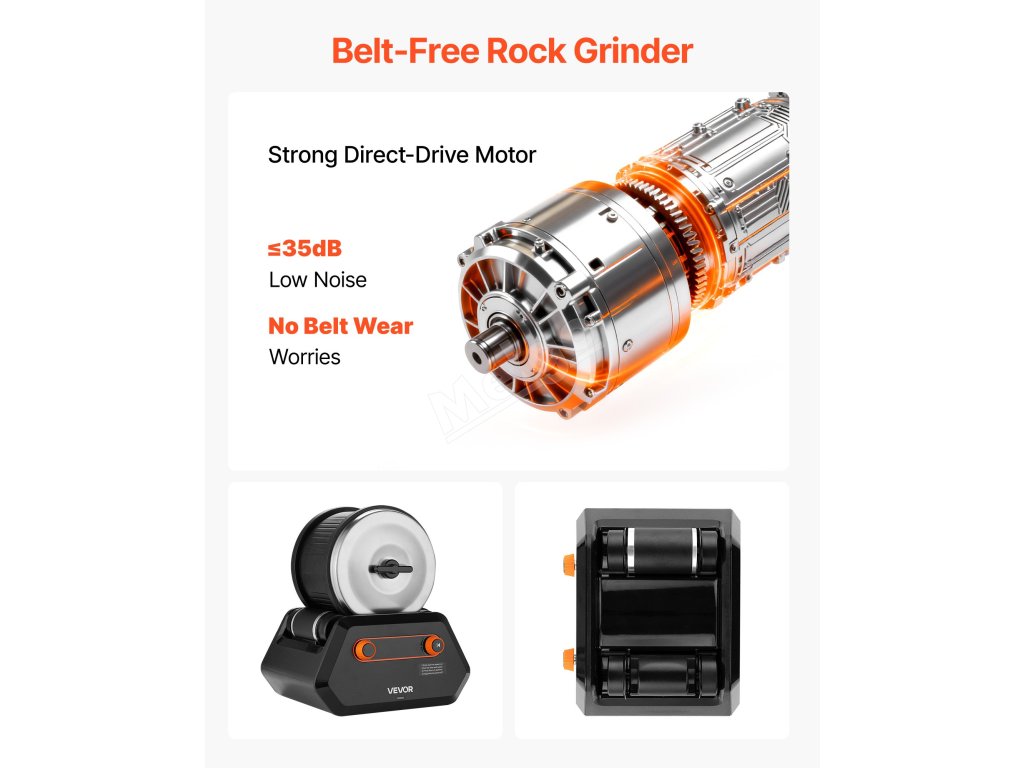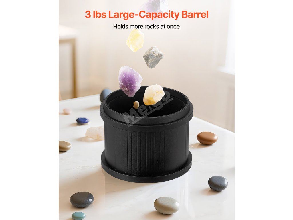 Tato leštička na kámen je vybavena několika bezpečnostními prvky pro jisté použití. Velkokapacitní válec pojme více kamenů pro vyšší účinnost, utěsněná konstrukce zabraňuje únikům, ochrana proti přetížení zabraňuje poškození, paměť vypnutí obnoví provoz po výpadku a nízkonapěťová konstrukce eliminuje riziko úrazu elektrickým proudem.