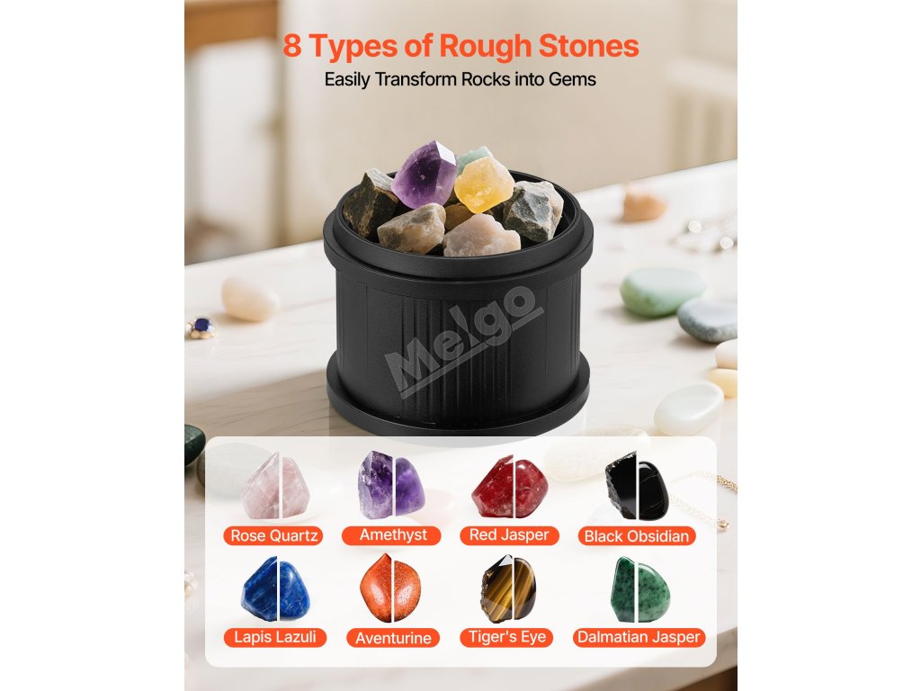 Tato sada na leštění kamenů používá vícestupňový proces, který z hrubých kamenů udělá hladké a jemné kousky. Obsluha je jednoduchá a účinná, k dosažení vytříbených výsledků nejsou nutné žádné složité kroky.