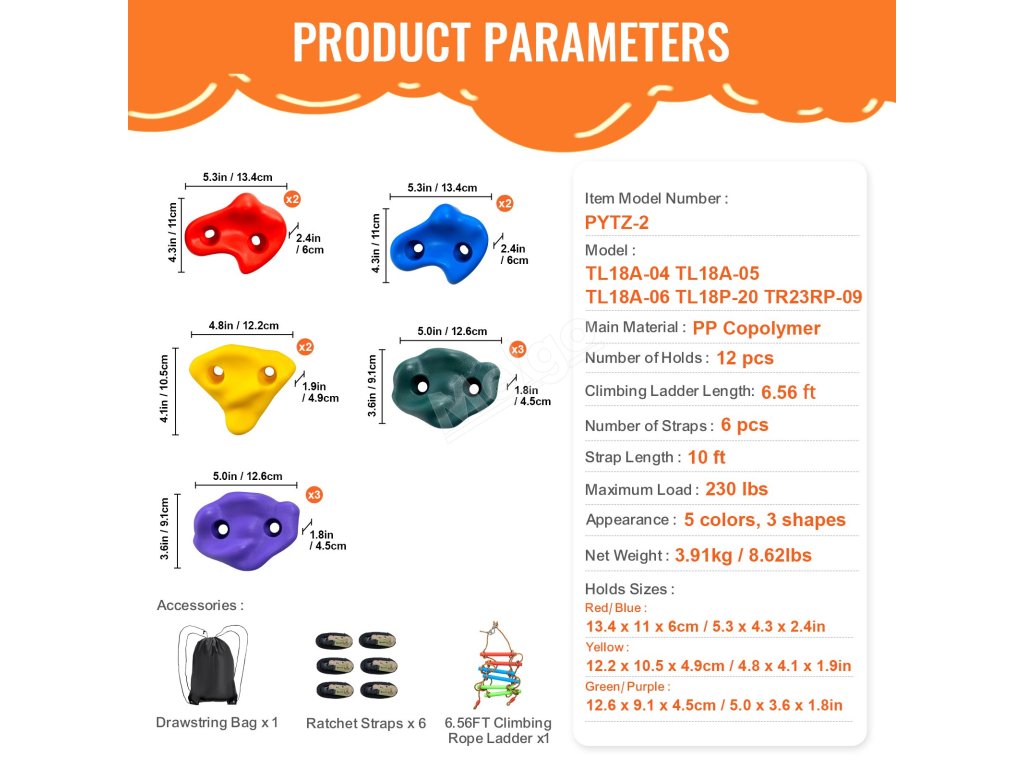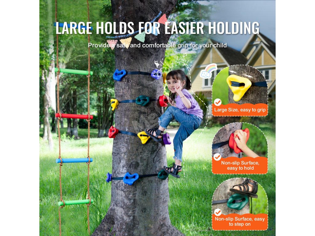 Chyty na lezení po stromech poskytnou vašim malým dobrodruhům bezpečný a vzrušující zážitek z lezení. Jsou dostatečně robustní, aby unesly až 230 kg, a zajišťují tak bezpečnost vašeho dítěte během hry.