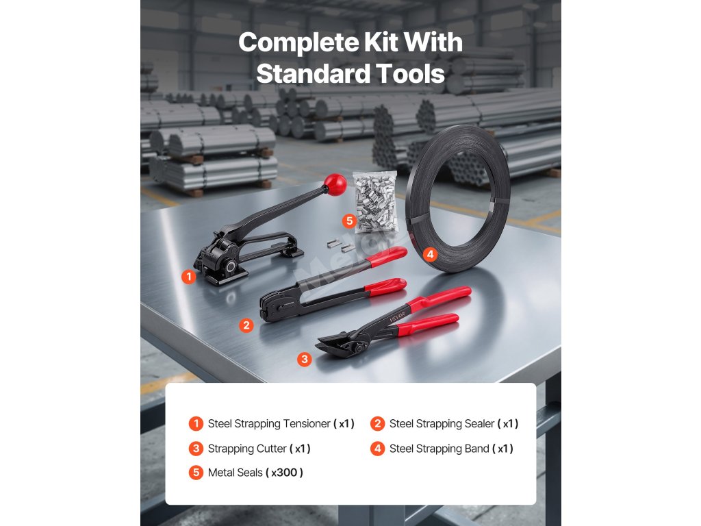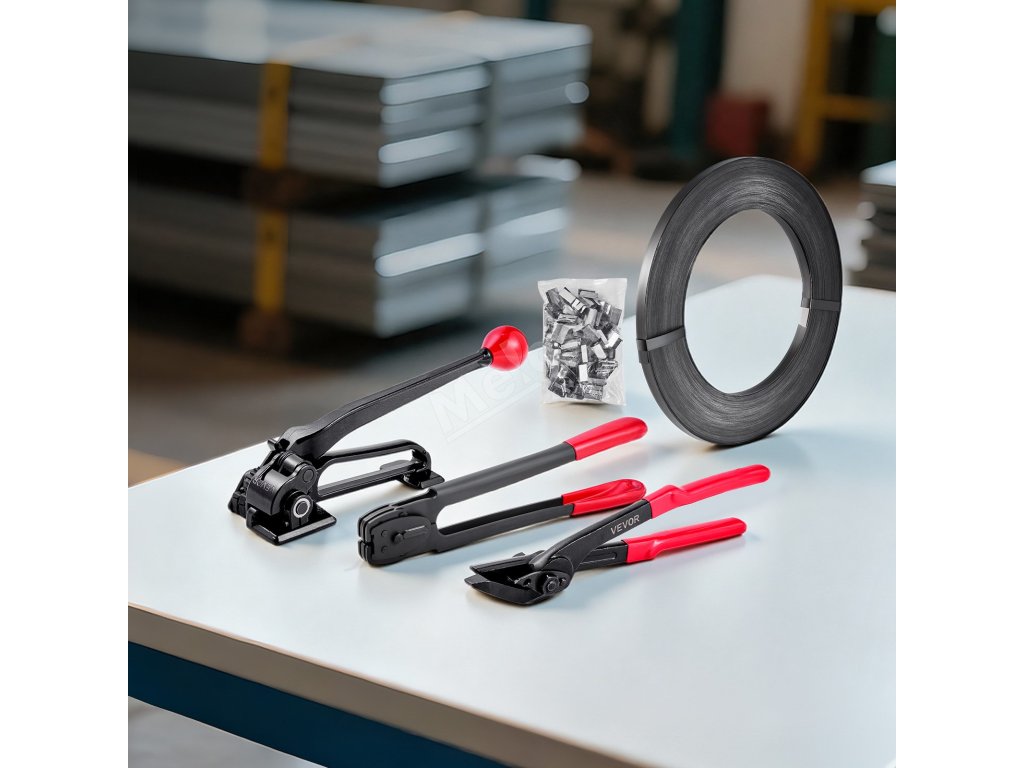 Sada na ocelové páskování 183 m pásky, 300 kovových spon, nástroj