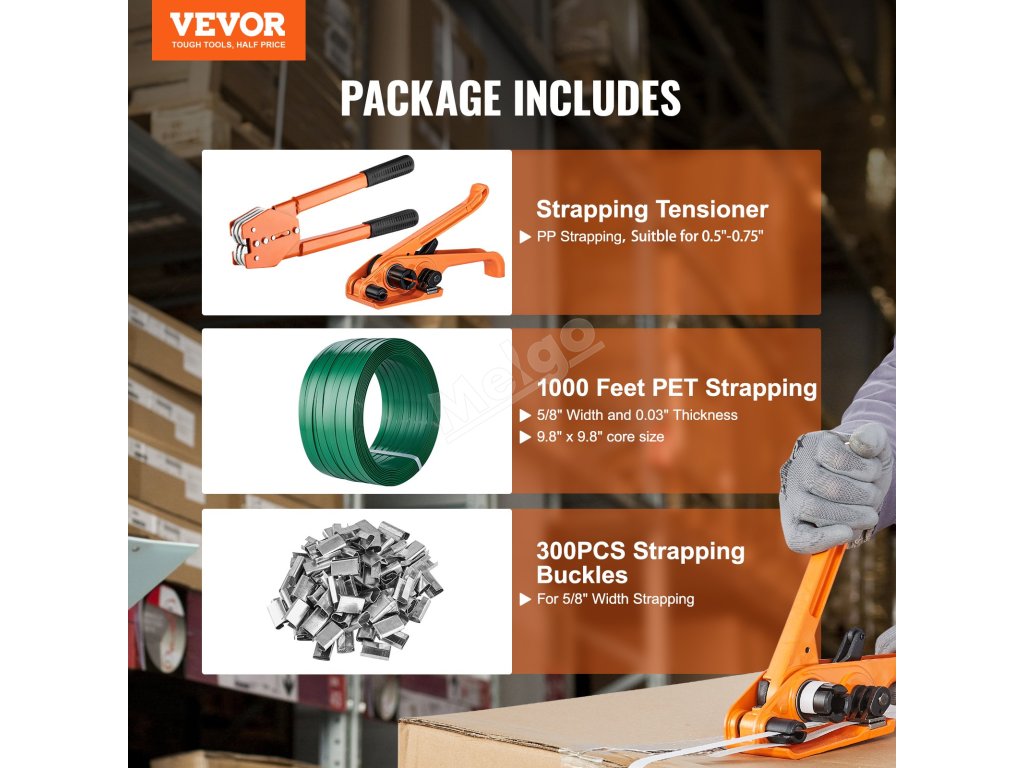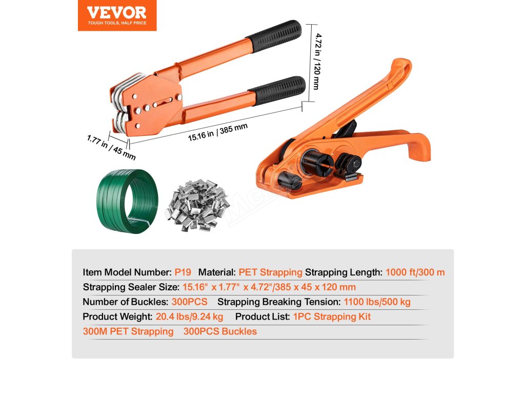 Sada na páskovanie pet 304.8 m, 300 kovových spon, napínač a lis