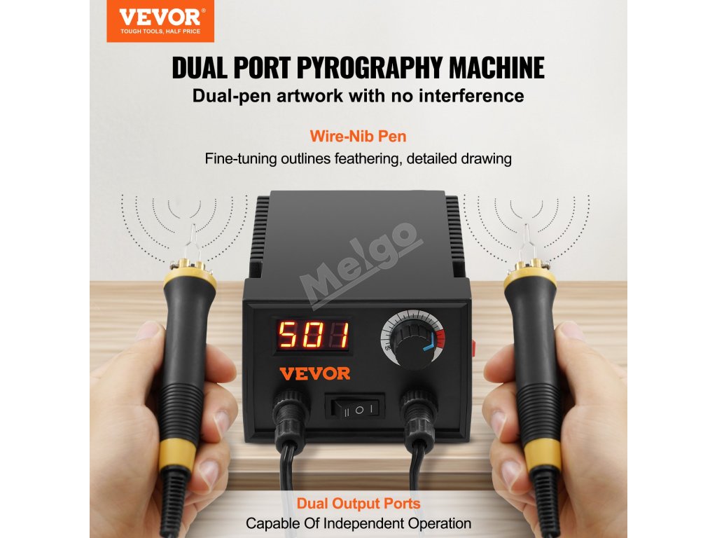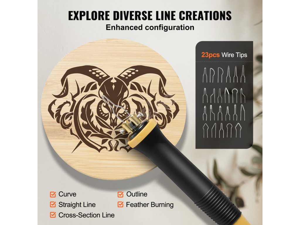 Nabízíme vám dvě pyrografická pera a 23 ocelových drátěných hrotů pro jemné doladění kontur, per a složitých detailů. Mohou pracovat současně, což umožňuje dvěma osobám vytvářet DIY nebo jedné osobě používat obě pera, aby se snížila náročnost výměny per.