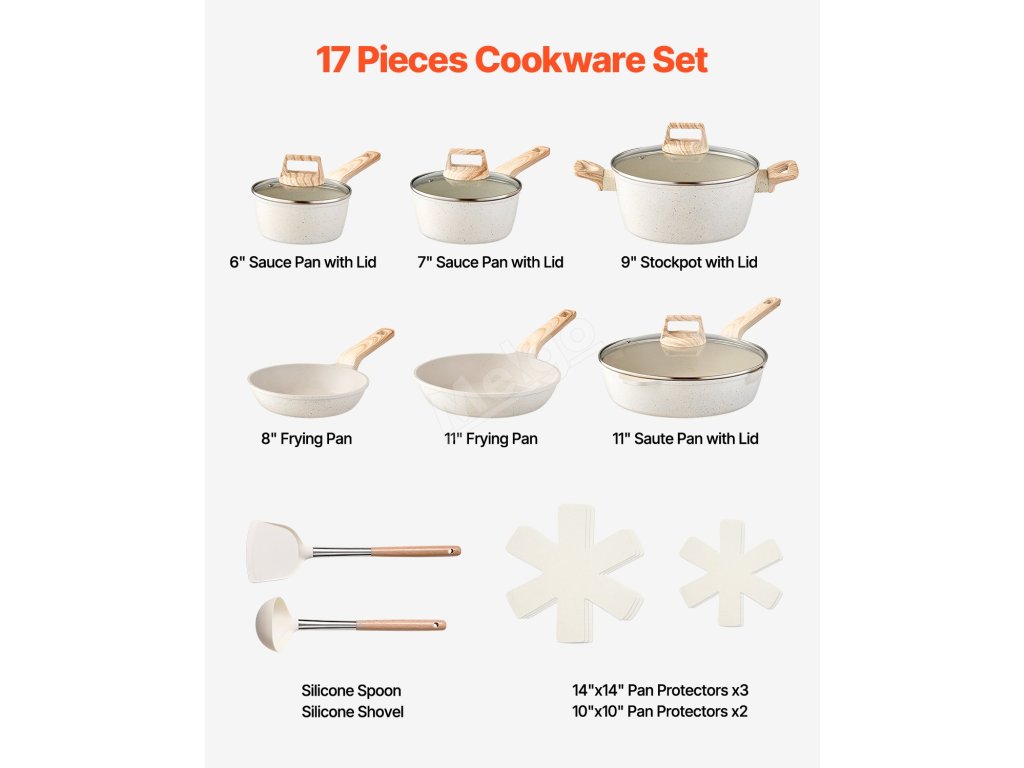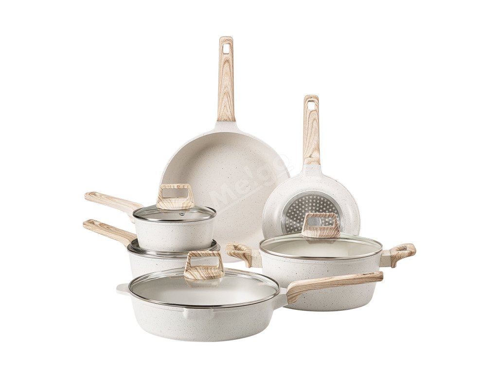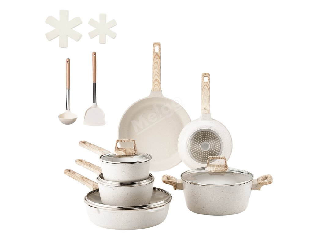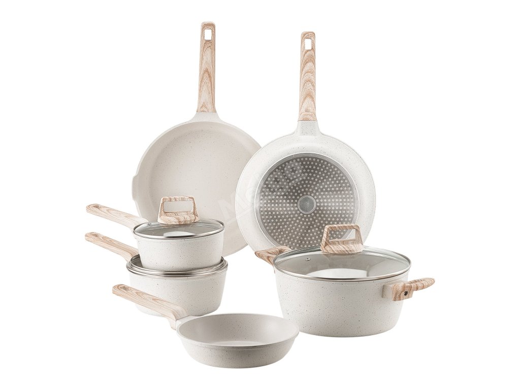Sada nádobí 17-dílná granit, nepřilnavá, indukční, s pokličkami bílá