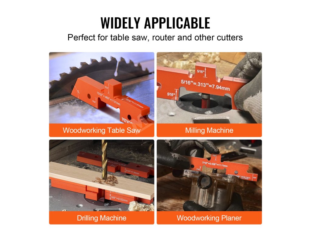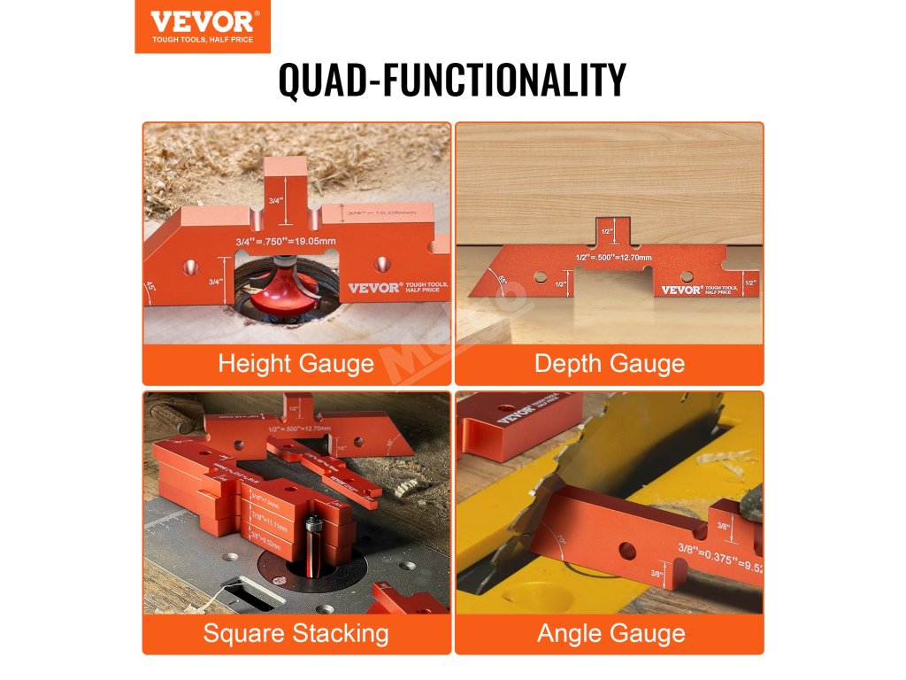 Nastavovací tyče VEVOR 4 v 1 pro práci se dřevem lze použít jako výškoměr, hloubkoměr, čtverec a úhloměr! Tato 14dílná sada se může pochlubit různými velikostmi s přesností až 0,001 in, je vyrobena z hliníkové slitiny s laserem gravírovanými značkami stupnice pro vysokou přesnost a dlouhou životnost.