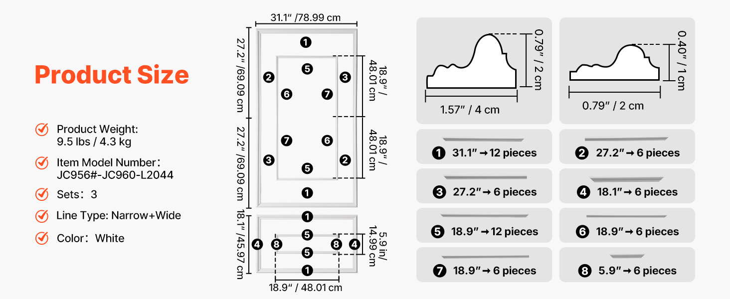 Tato sada nástěnných lišt obsahuje předřezané lištové díly pro hladkou a snadnou instalaci. Ať už o víkendu renovujete pronajatý byt, nebo modernizujete svůj dům, každý detail je navržen tak, aby vám pomohl dosáhnout výsledků hodných časopisu na první pokus.