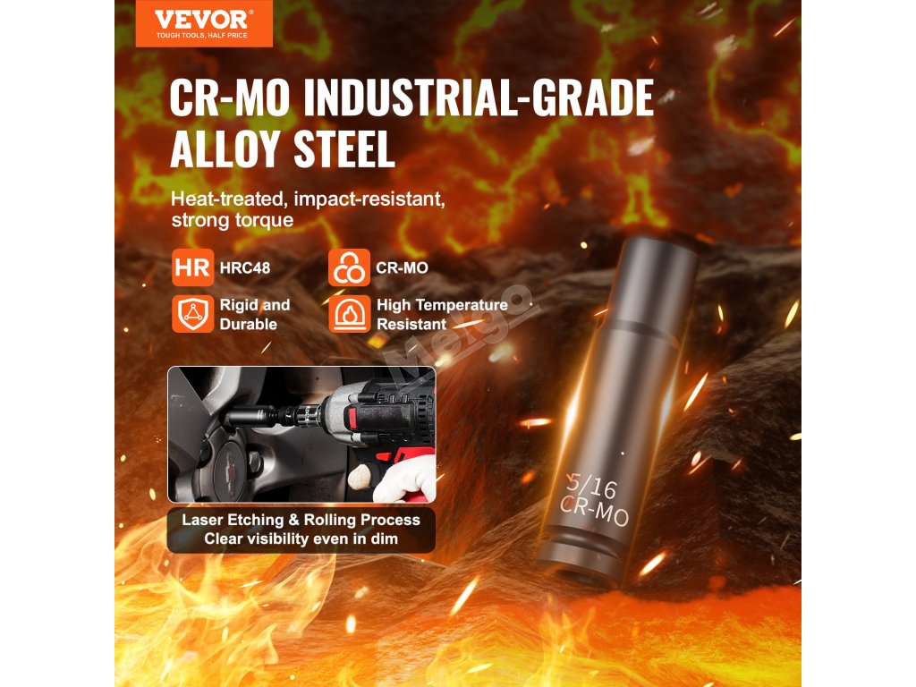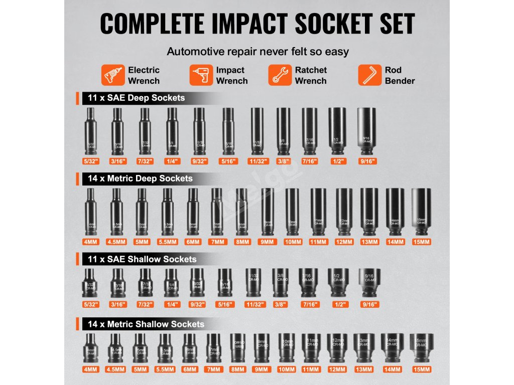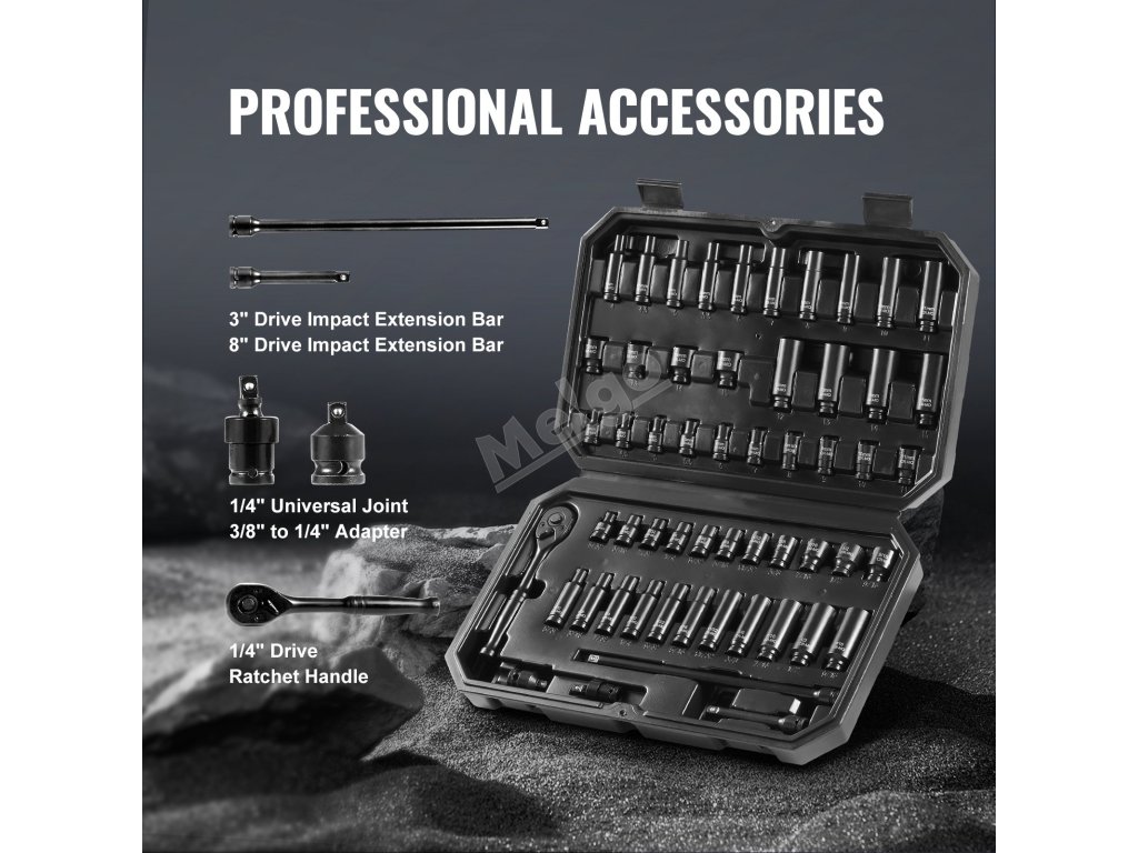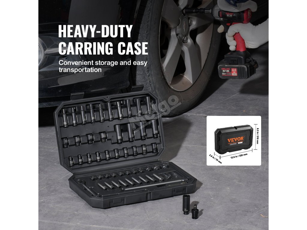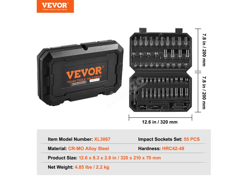 Hledáte profesionální a přenosnou sadu rázových nástrčných hlavic? 55dílná sada rázových nástrčných hlavic VEVOR nabízí kompletní sortiment nářadí, které je vhodné zejména pro opravy automobilů různých značek.