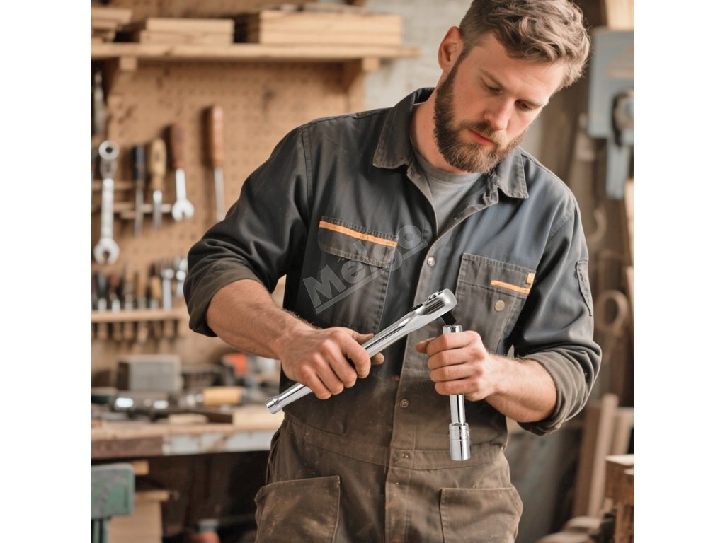 Přesně dimenzované nástrčné hlavice zaručují ideální uchycení ráčnového klíče. Bez námahy můžete měnit různé velikosti a zvýšit tak efektivitu a přizpůsobivost pro širokou škálu aplikací.