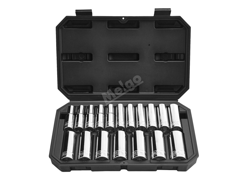 Sada nástrčných hlavic 18 ks, 12.7 mm, 10–27 mm, cr-v ocel, s pouzdrem
