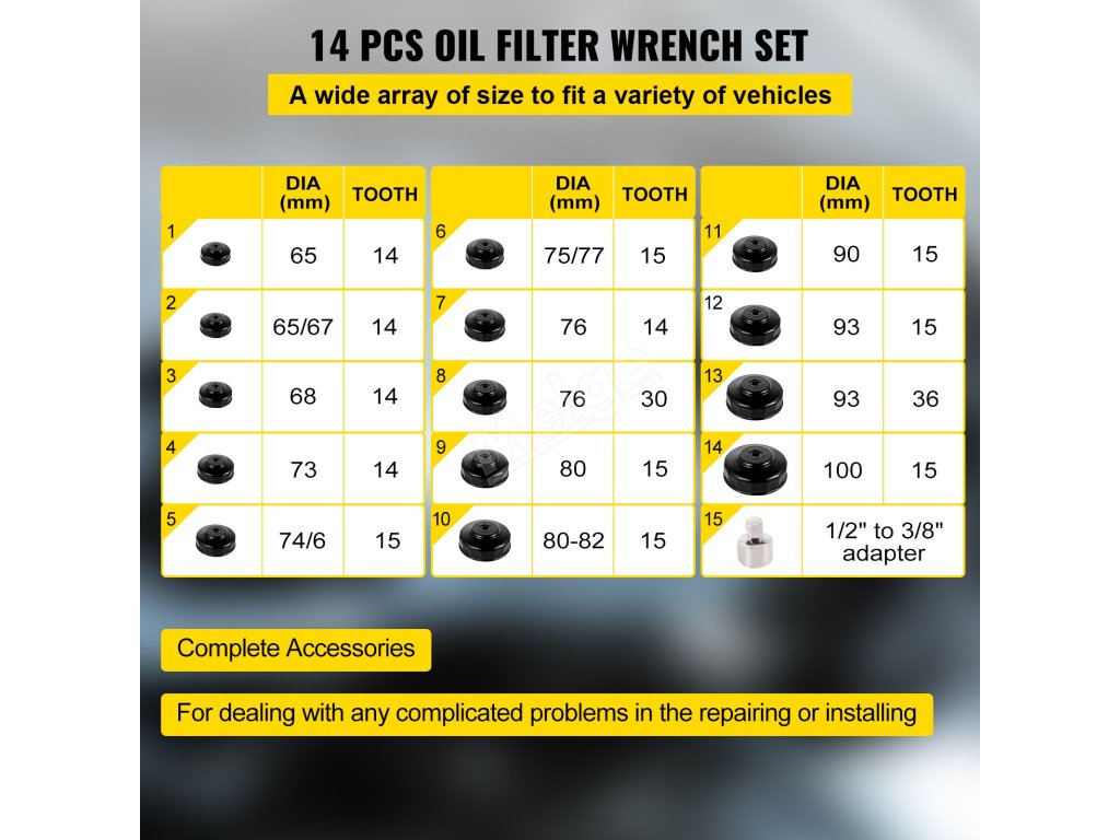 Obsahuje 14 kusov, čo vám zaručí správnu veľkosť pre väčšinu filtrov. Súprava je určená pre rôzne značky a modely. Dobre funguje so zahraničnými aj domácimi vozidlami. Vďaka tejto všestrannosti je nevyhnutným nástrojom pre každého majiteľa vozidla. Táto súprava vás pokryje od bežných automobilov až po špecializované modely. Tieto viaceré veľkosti zaisťujú vždy dokonalú montáž. Už nemusíte bojovať s nepoddajnými filtrami. Táto sada kľúčov na olejové filtre vám zjednoduší rutinnú údržbu. Je navrhnutá tak, aby bola výmena oleja rýchlejšia a jednoduchšia. To vám z dlhodobého hľadiska ušetrí čas a námahu.