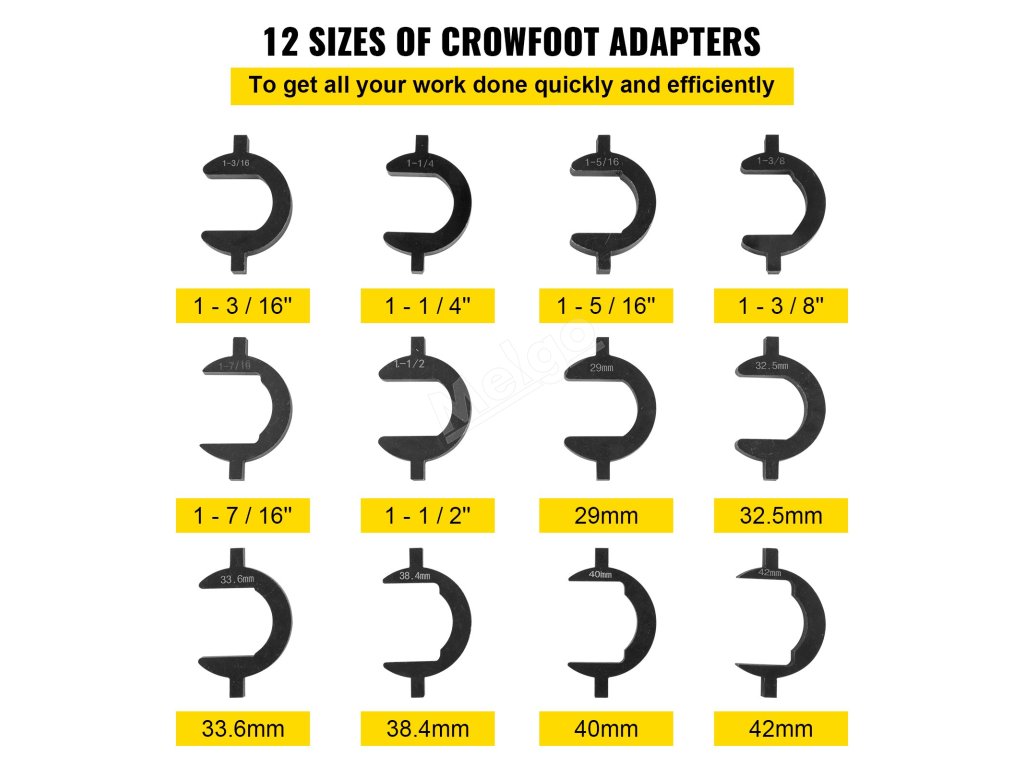 12 x zalomená patka (29 mm, 1-3/16 palce, 1-1/4 palce, 32,5 mm, 1-5/16 palce, 33,6 mm, 1-3/8 palce, 1-7/16 palce a 1-1/2 palce)