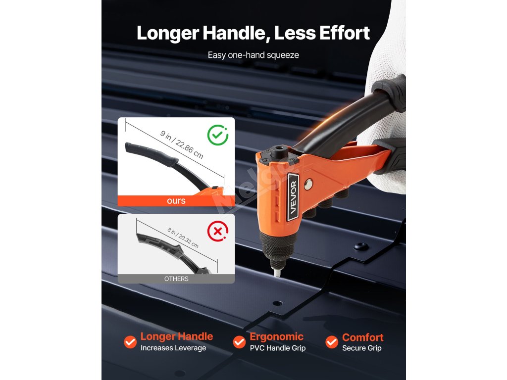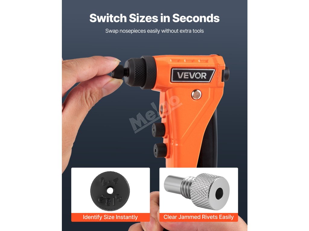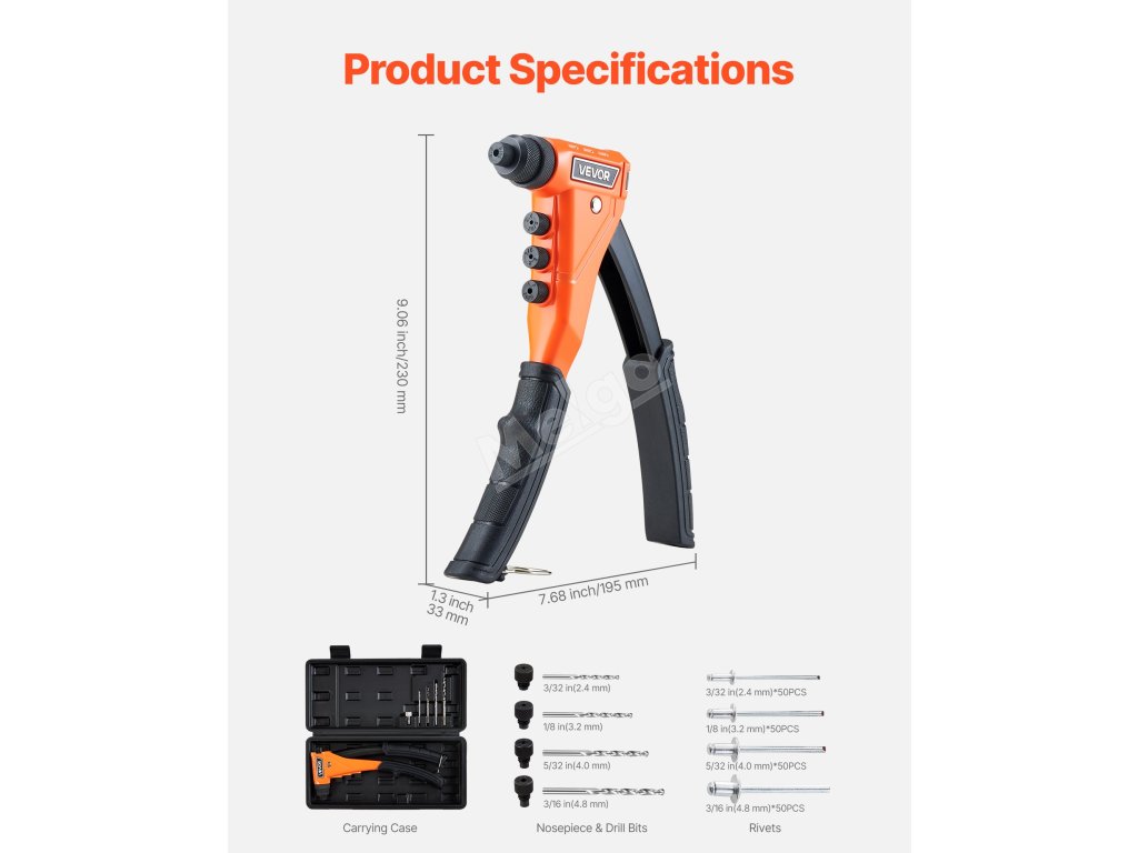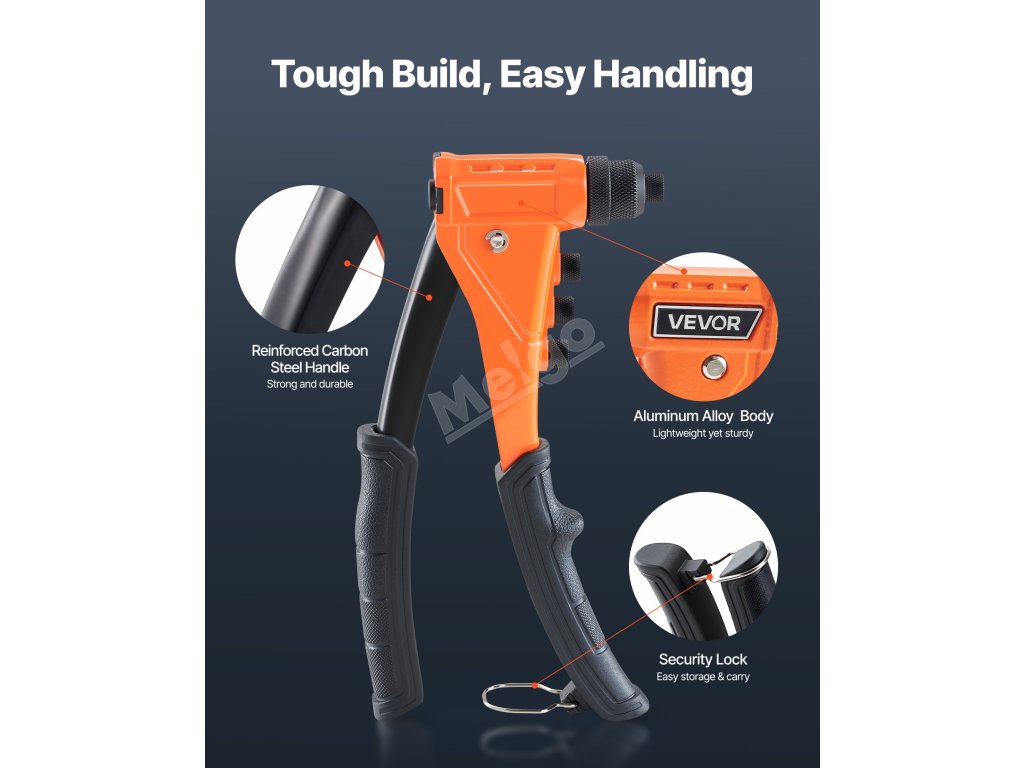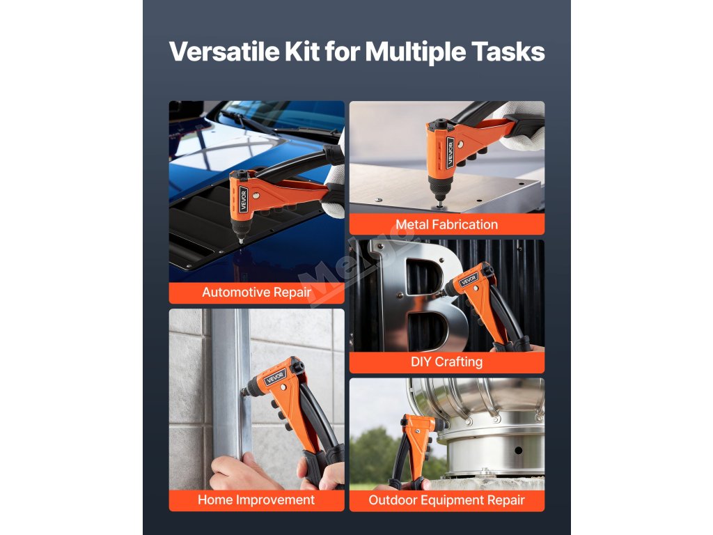 Tato kompletní sada nýtovacích pistolí je přesně tam, kde ji potřebujete - úhledná, spolehlivá a připravená k použití - od domácích oprav až po dílenské projekty.