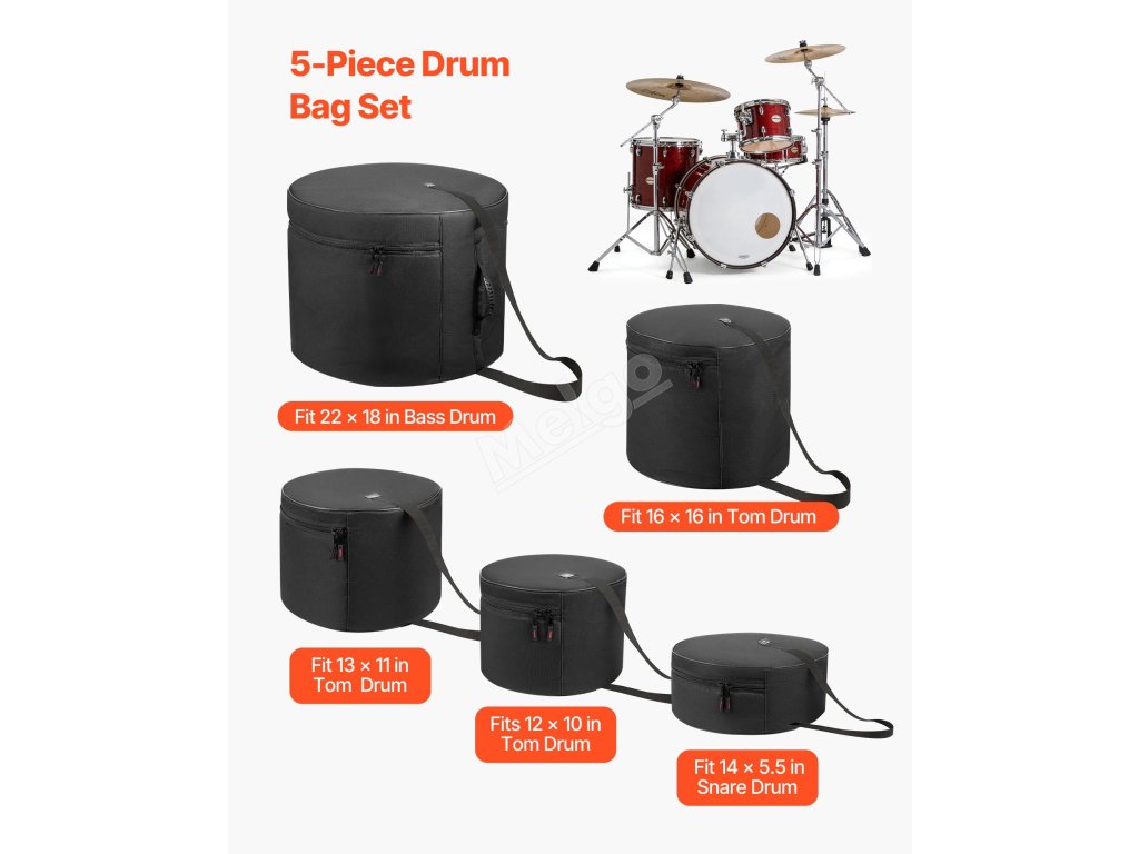 Sada obalů na bubny 5-dílná, 600D, polstrované, s rukojetí
