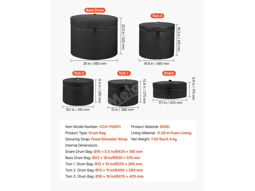 Tato sada brašen na bicí nástroje má dobře navrženou konstrukci s dostatečnou kapacitou a přehlednými přihrádkami. Je odolná proti nárazu a vodě, takže je ideálním společníkem pro vaše vystoupení na cestách.