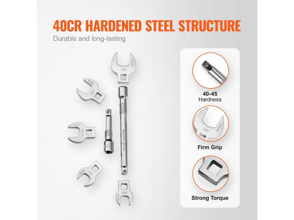 Vysoce pevná konstrukce 40CR zajišťuje, že naše sada klíčů si zachovává točivý moment a poskytuje spolehlivost, odolnost a dlouhou životnost. Leštěný chromovaný zrcadlový povrch dodává styl a zajišťuje odolnost proti korozi a ochranu proti korozi.