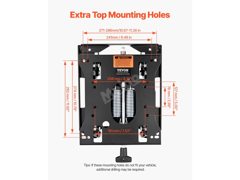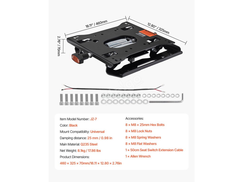 Tato sada odpružení vysokozdvižného vozíku unese 110-286 kg, má 1,18" zdvih tlumení nárazů a účinně snižuje únavu zad a pasu. Díky 8 montážním otvorům je ideální pro vysokozdvižné vozíky, sekačky na trávu atd. Díky 19,7" prodlužovacímu spínacímu kabelu je instalace flexibilní a rychlá.