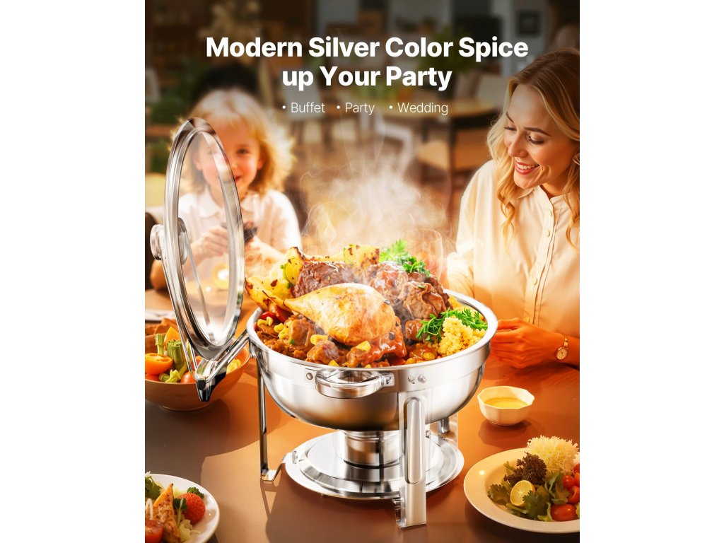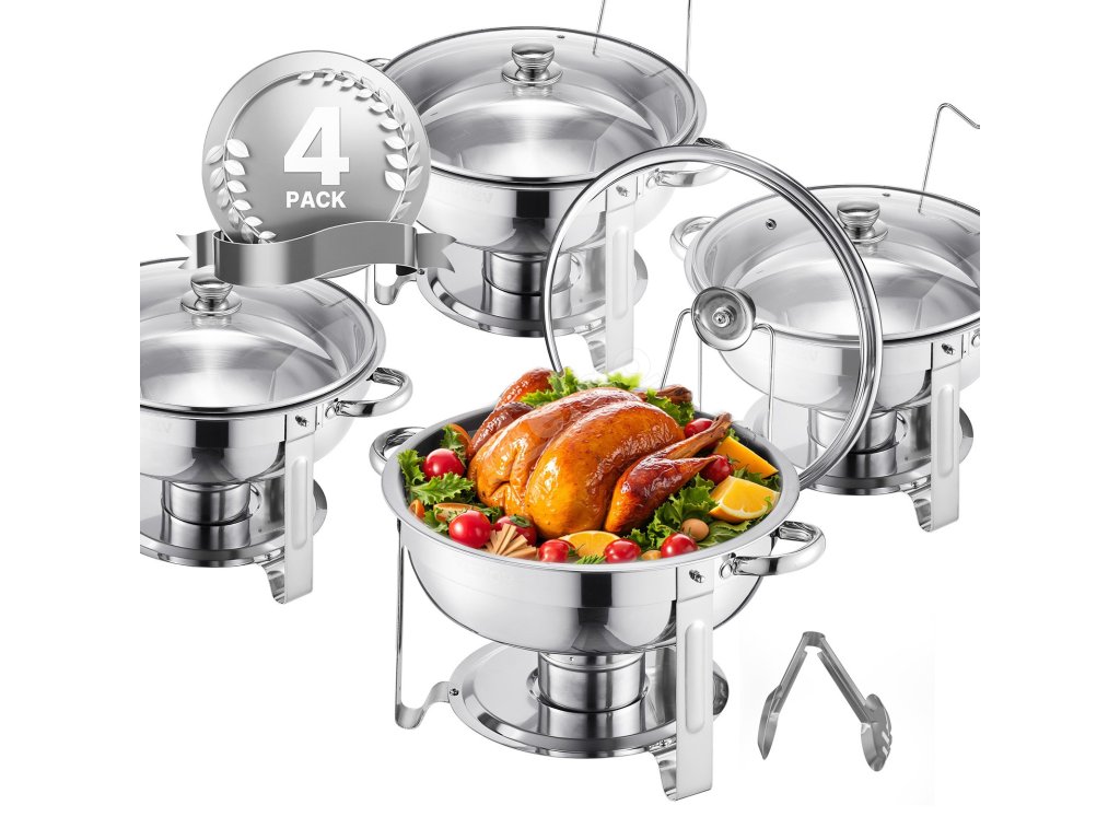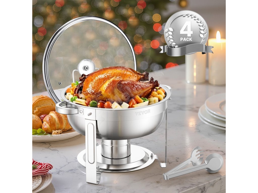 Sada ohřívačů 5 Qt, 4 ks, nerez, 4 pánve, skleněné víko, stojan