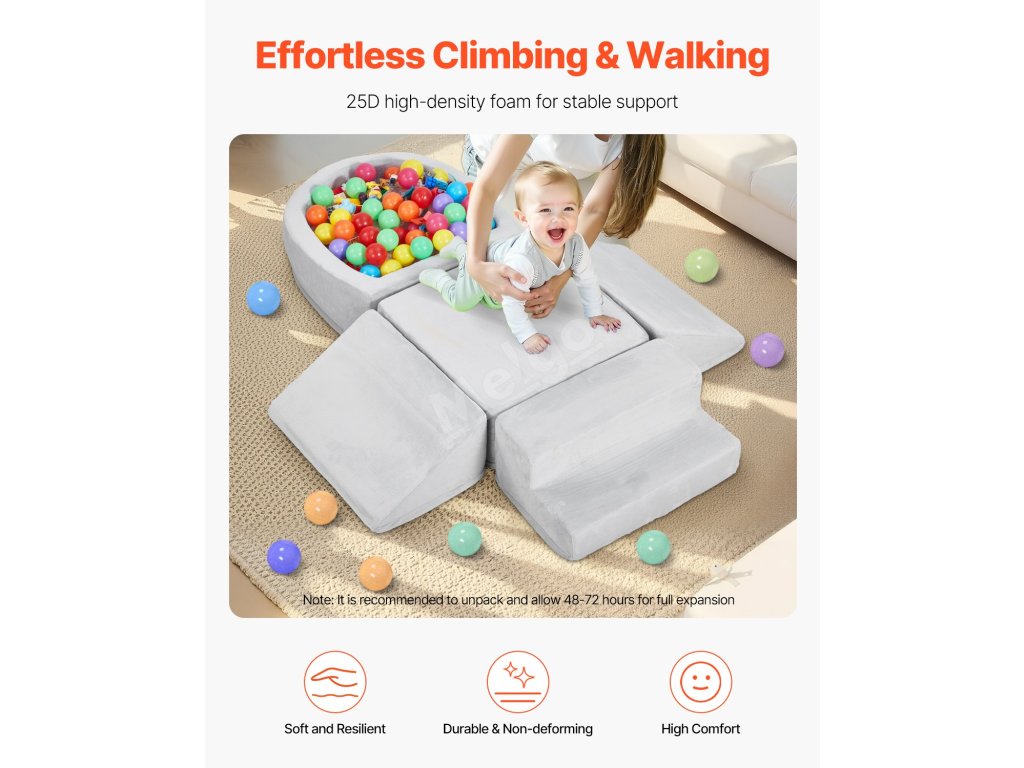 Bloky na lezení jsou vyrobeny z pěny s vysokou hustotou, která poskytuje vynikající oporu, a jsou ideální pro děti, aby mohly lézt, lézt, klouzat se a hrát si po delší dobu a zároveň se vyhnout kolizím a zraněním.