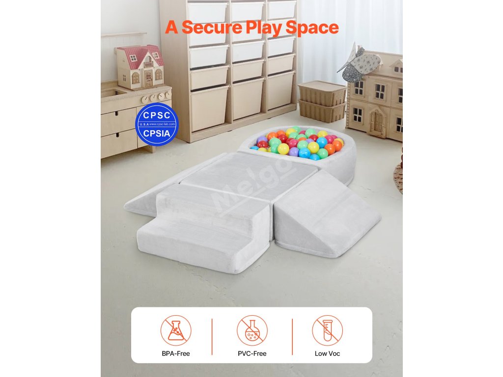Sada měkkých prolézaček využívá vysoce kvalitní materiály a splňuje normy CPSIA s mnoha bezpečnostními prvky navrženými s ohledem na zdraví dítěte.