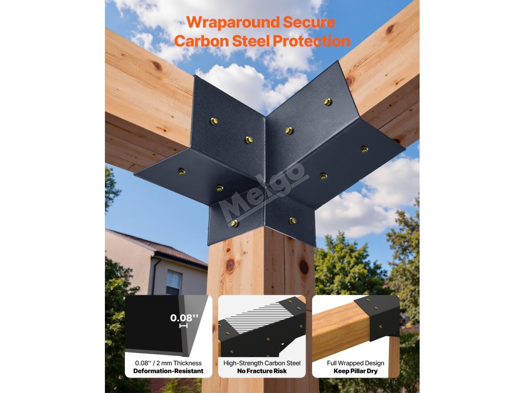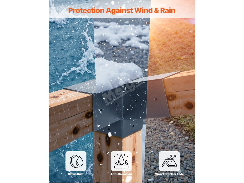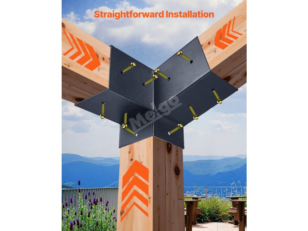 Sada pergolových 3cestných konzol 4×4 inch pro trámy 92×92 mm, 2 ks