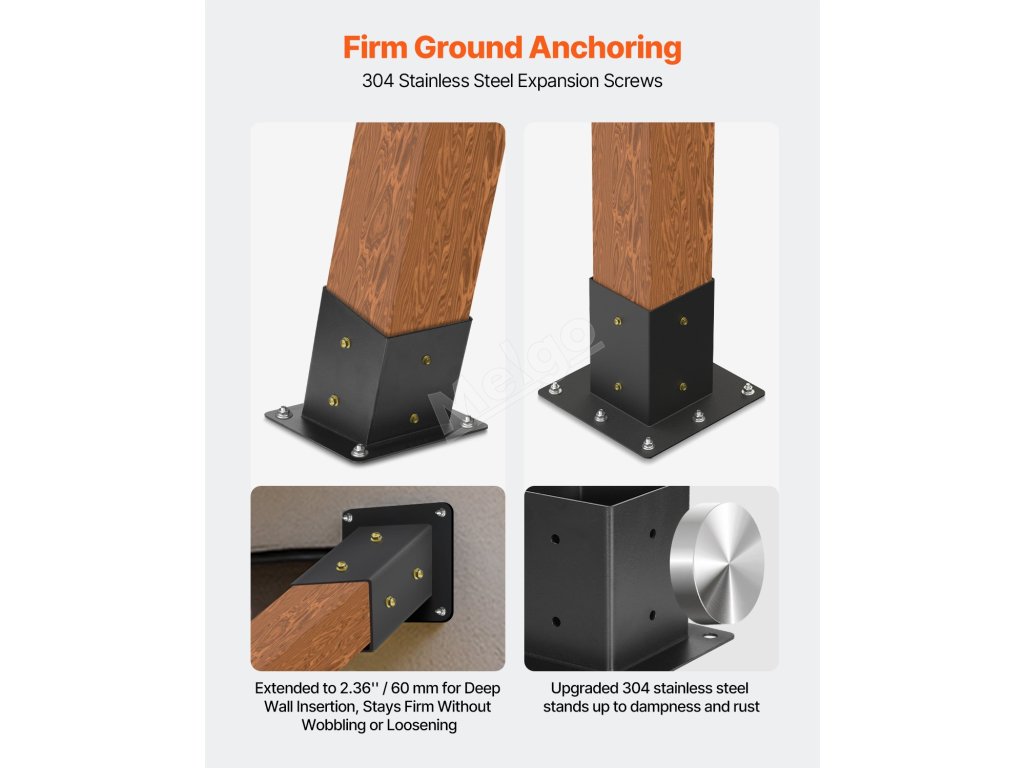 A2: U měkkého dřeva (např. borovice, smrk, douglaska) lze použít přímo vruty. Pro tvrdé dřevo (např. dub (červený/bílý), teak, sekvoje) je nutné předvrtání. Kompatibilní s instalacemi do betonu, rašeliny a cihlových zdí.