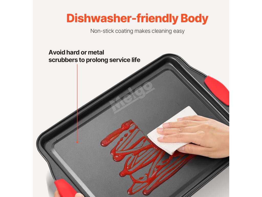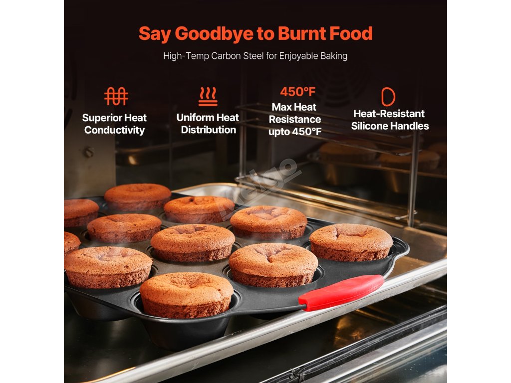 Povrch těchto plechů je opatřen vysoce kvalitním nepřilnavým povrchem, který zajistí, že vaše koláče, sušenky a muffiny budou snadno vyklouzávat. Už žádné připalování nebo špinavé uklízení, jen rychlé uvolňování pokrmů bez námahy a snadný úklid! Ideální pro všechny nadšence do pečení!