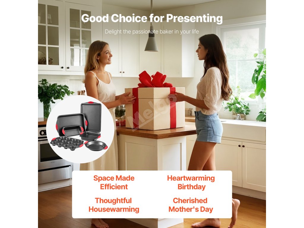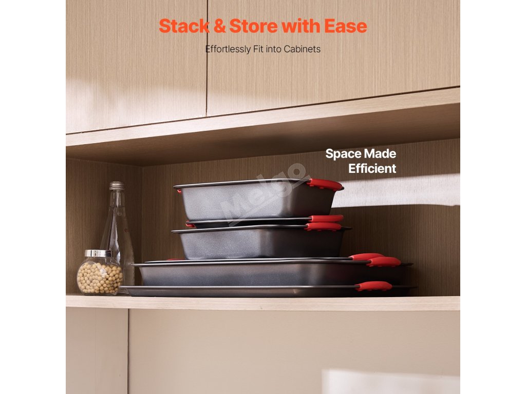 Vyberte si z různých velikostí forem na pečení, které vyhoví všem potřebám. Malá forma je ideální pro pečení sušenek, střední forma se skvěle hodí na koláče, zatímco velká forma si snadno poradí s masem a zeleninou. Jedna sada splní všechny vaše požadavky na pečení!