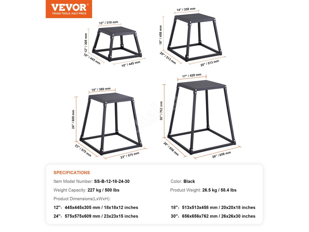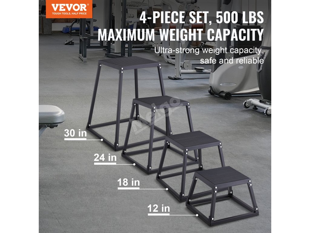 Plyometrické skákacie boxy VEVOR sú skonštruované tak, aby vydržali. Sú vyrobené z vysokokvalitných materiálov. Robustná konštrukcia zaručuje, že zvládnu náročné používanie, pričom každý box unesie až 500 kg. Vďaka tomu sú vhodné na intenzívne tréningy. Odolná konštrukcia tiež znamená, že vydržia hrubé zaobchádzanie aj pri pravidelných skokoch a dopadoch a zostanú nepoškodené. Táto odolnosť predlžuje ich životnosť. V dohľadnej dobe ich nebudete musieť vymeniť. Tieto robustné rámy a vrchné časti zabezpečujú, že dobre vydržia. Ich pevná konštrukcia zaručuje, že boxy zostanú funkčné po dlhú dobu. Investujte do týchto boxov, aby ste získali dlhotrvajúce a spoľahlivé tréningové vybavenie.