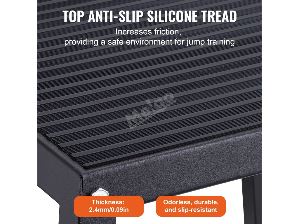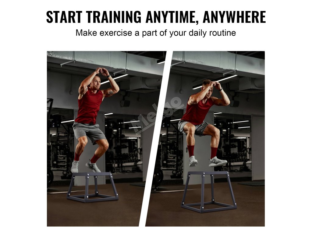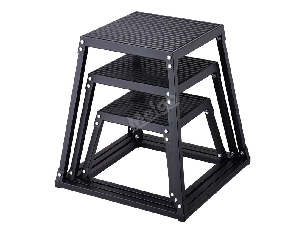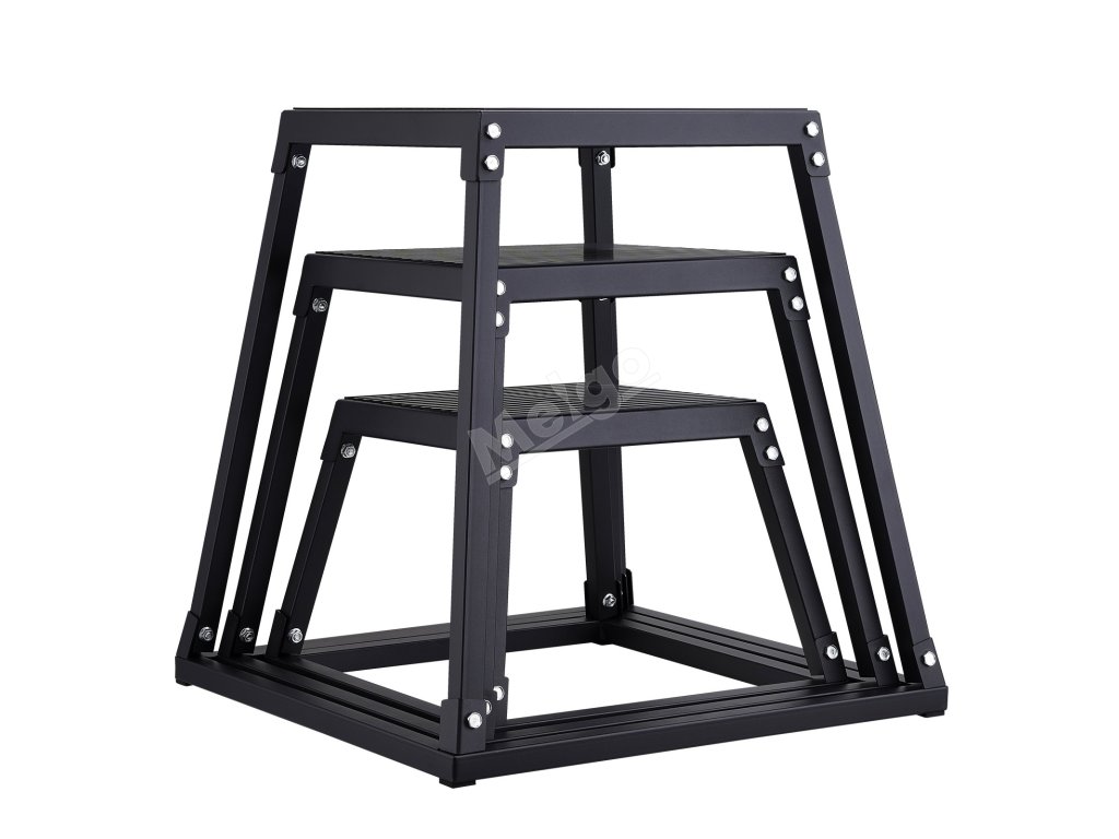 Tréninkový plyo box se čtyřmi gumovými podložkami ve spodní části a texturovaným silikonovým povrchem v horní části, který zajišťuje stabilitu a přilnavost pro bezpečné a efektivní cvičení. Povrch ocelových trubek je opatřen práškovou barvou pro vizuálně atraktivní a korozivzdornou povrchovou úpravu.