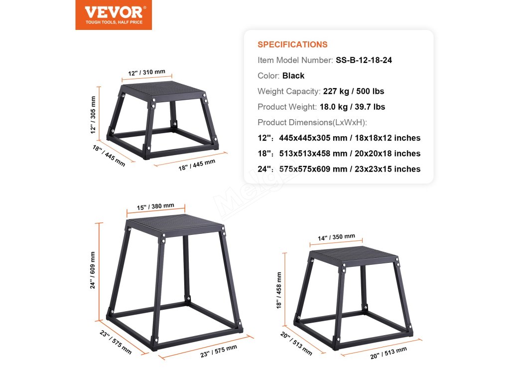 Můžete provádět rozšířený trénink v různých výškách, 12 palců, 18 palců, 24 palců. Extrémně silná nosnost 500 liber může splnit vaše rozmanité tréninkové potřeby.