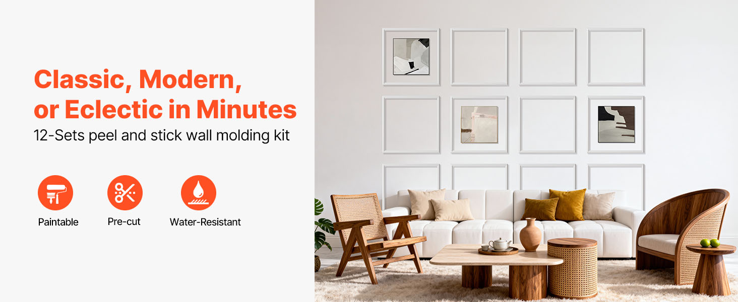 Proměňte svůj pokoj během okamžiku. Elegantní linie vytvářejí jemné kontury, které dodají vašemu prostoru elegantní vzhled, aniž byste museli najímat stavební firmu, starat se o nepořádek nebo trávit týdny renovací. Tato sada nástěnných lišt vám pomůže dosáhnout ohromujících výsledků bez námahy.