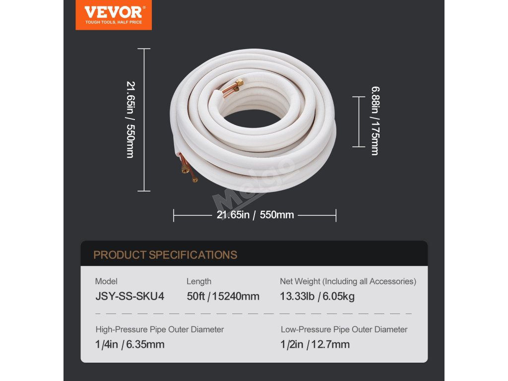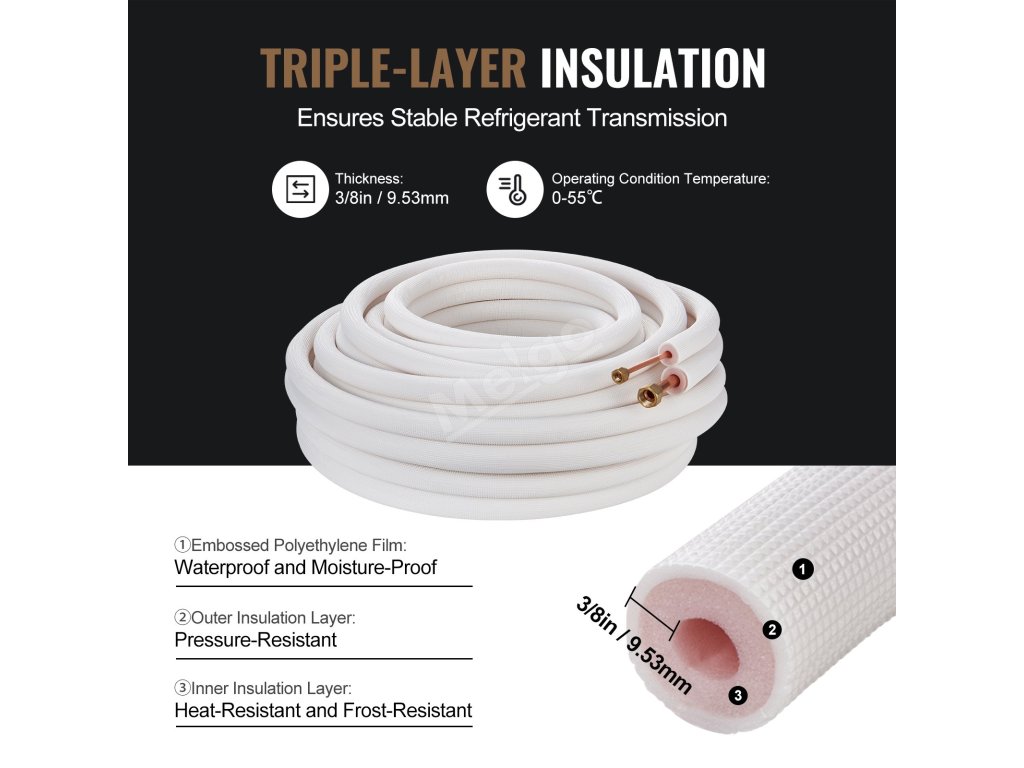 Pro lepší ochranu vnitřních měděných trubek používá VEVOR třívrstvé izolační materiály, které mají lepší izolační vlastnosti než běžné dvouvrstvé izolační materiály. Reliéfní povrchová úprava zvyšuje odolnost a představuje nepopiratelnou pevnost.