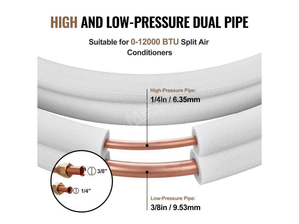 Pro lepší ochranu vnitřních měděných trubek používá VEVOR třívrstvé izolační materiály, které mají lepší izolační vlastnosti než běžné dvouvrstvé izolační materiály. Reliéfní povrchová úprava zvyšuje odolnost a představuje nepopiratelnou pevnost.