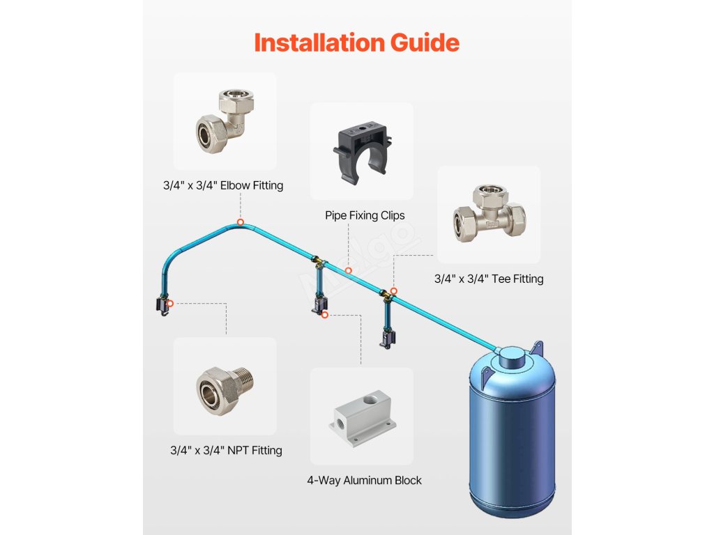 Naše sada vzduchového potrubí z HDPE a hliníku se dodává se všemi nástroji potřebnými k instalaci. Celý systém stlačeného vzduchu jednoduše nastavíte podle jednoduchých pokynů - není třeba žádné další nářadí ani nákupy.