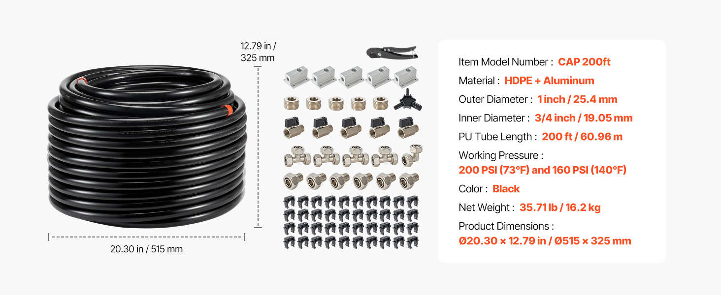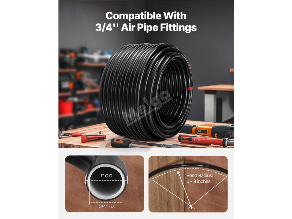 Náš systém potrubí stlačeného vzduchu 200FT x 3/4" má třívrstvou strukturu HDPE-hliník-HDPE, která zajišťuje vynikající odolnost proti korozi, vysokou tlakovou odolnost a vynikající pevnost. Je odolný proti únikům a snadno se instaluje, takže poskytuje spolehlivé a účinné zásobování vzduchem pro továrny a dílny.