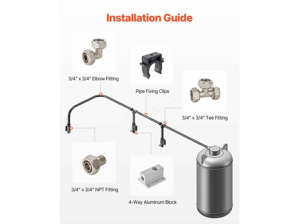 Tento systém rozvodů stlačeného vzduchu nabízí 2 flexibilní způsoby rohového připojení. Můžete si vybrat koleno 90 stupňů pro pravoúhlé připojení, které snižuje poloměr ohybu, nebo zvolit metodu poloměru ohybu, která se snadno přizpůsobí požadovanému tvaru s poloměrem ohybu 6 až 8 palců.