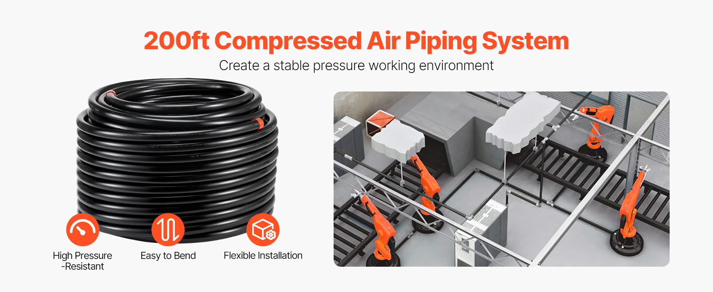 Tato sada potrubí vzduchového kompresoru je vyrobena z robustní třívrstvé konstrukce HDPE-hliník-HDPE a nabízí výjimečnou odolnost proti korozi, zvýšenou trvanlivost a schopnost odolávat vysokým tlakům. Zajišťuje konzistentní a efektivní dodávku vzduchu, ideální pro továrny nebo dílny.