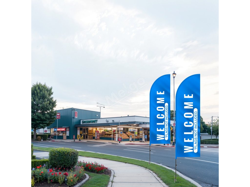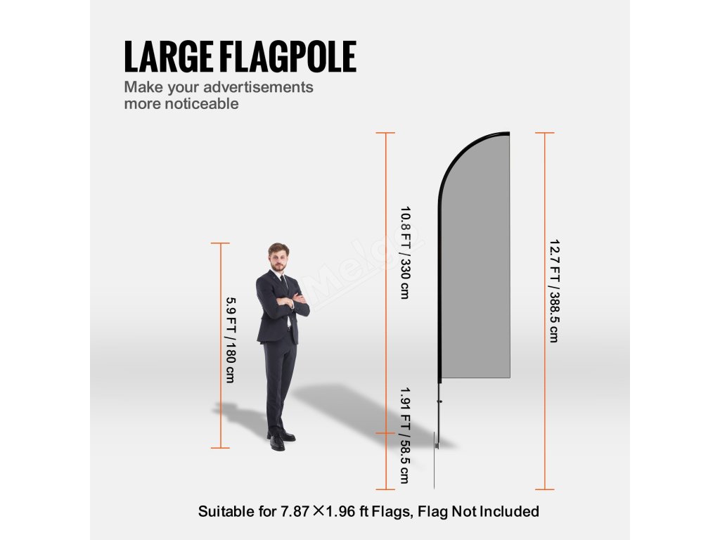 Tyto reklamní stožáry jsou navrženy tak, aby se na ně vešly různé vlajky ve tvaru pera a slzy, a jsou ideální pro venkovní akce, výstavy, sportovní soutěže a velká veřejná shromáždění. Přestože vlajka není součástí balení, je sada stožárů kompatibilní s různými styly vlajek.