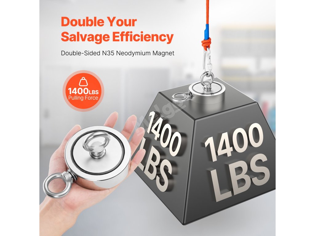 Sada pro magnetické lovení 1400 LBS/635 Kg dvojitý magnet, lano, hák