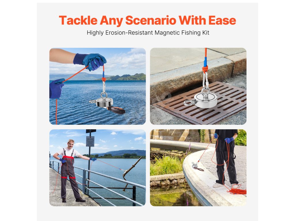 Tato magnetická rybářská sada je ideální nejen pro hledání pod vodou a hledání pokladů v přírodě, ale také pro zavěšování předmětů, ukládání součástek v garáži a další. Díky svým rozmanitým funkcím přináší větší pohodlí a radost z venkovních dobrodružství i z domácího použití.