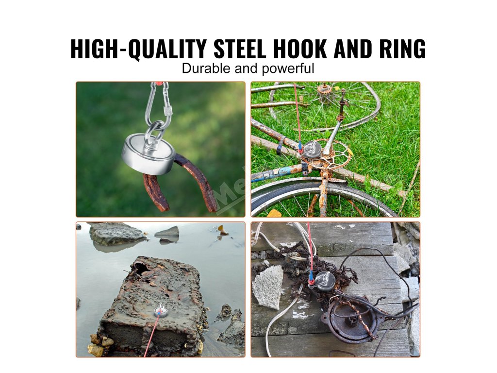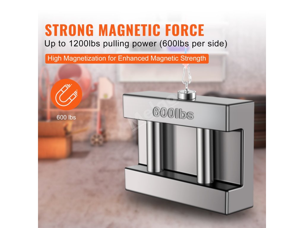 Díky pozoruhodné tažné síle až 1 200 liber (600 liber na každou stranu) je náš kompaktní, ale výkonný oboustranný rybářský magnet špičkou v oboru.