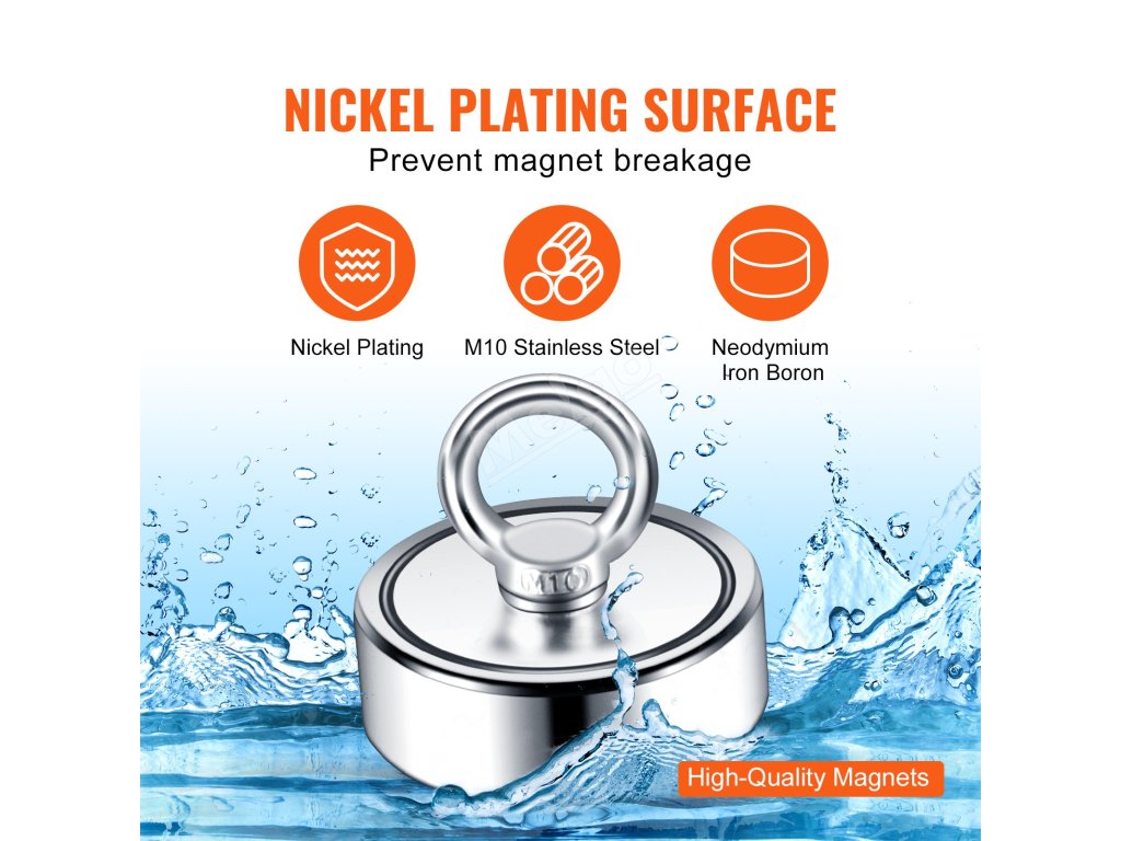 Náš rybářský magnet je potažen niklem, což zvyšuje jeho odolnost proti korozi a snižuje křehkost. Jsou konstruovány tak, aby bez problémů odolávaly přírodním živlům.