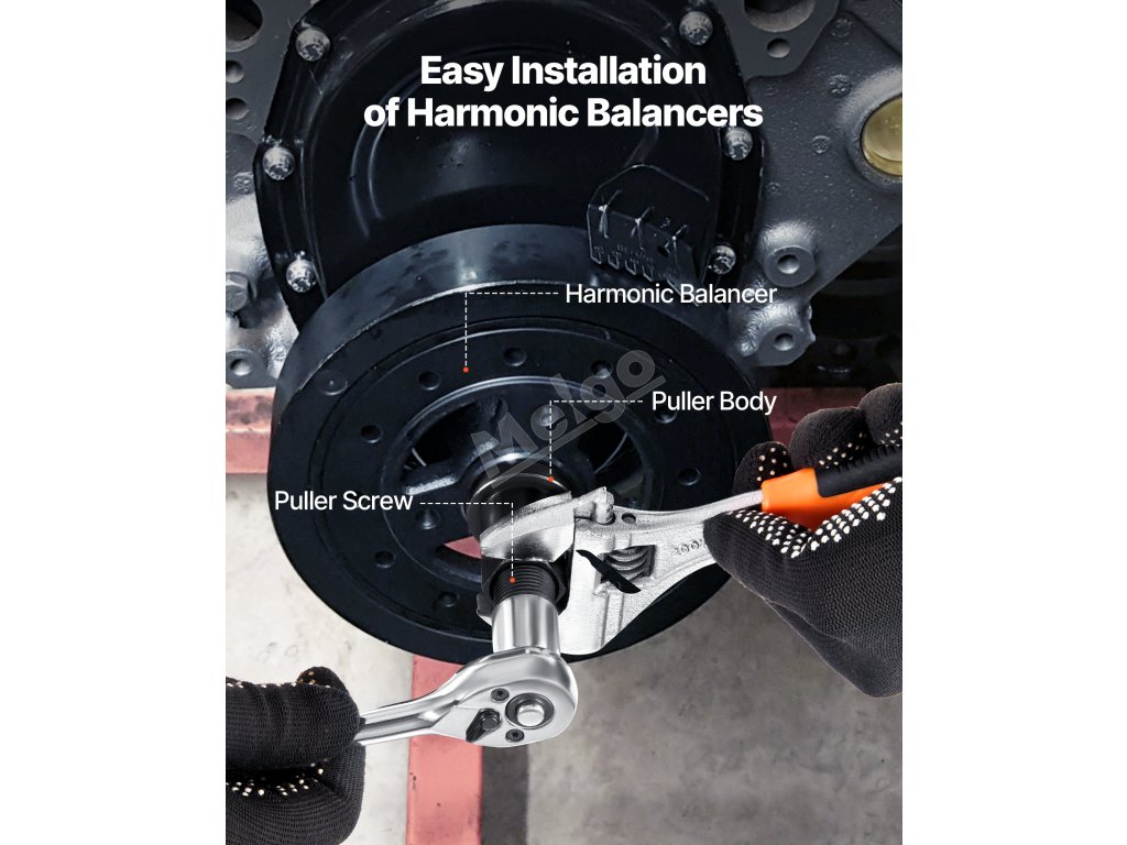 Pomocí naší sady řemenic harmonického vyvažovače můžete rychle přepínat mezi režimem vytahování a instalace. Otáčením šroubu pomocí klíče dokončíte svůj úkol rychle a přesně.