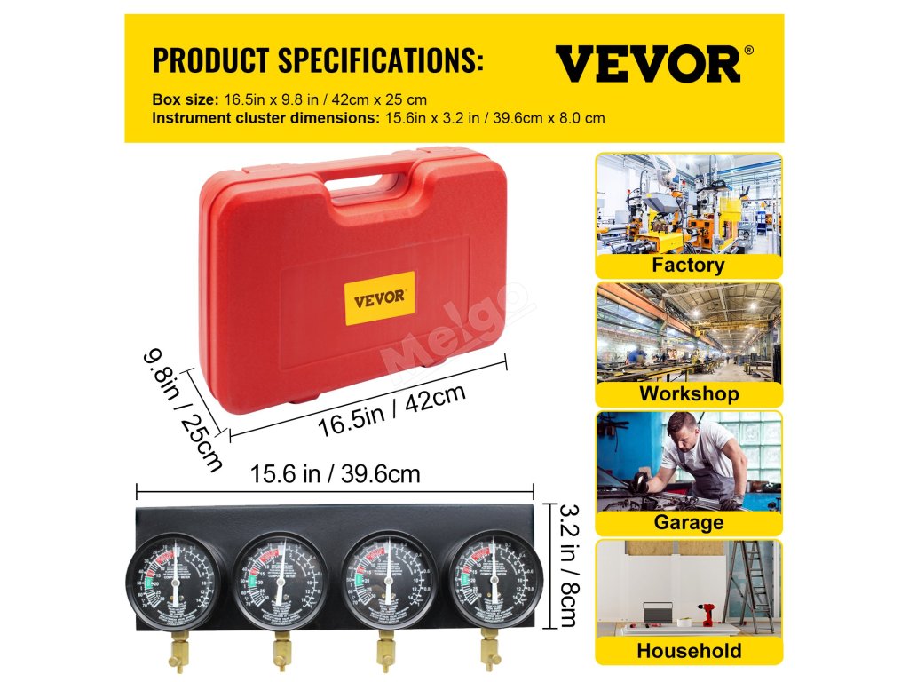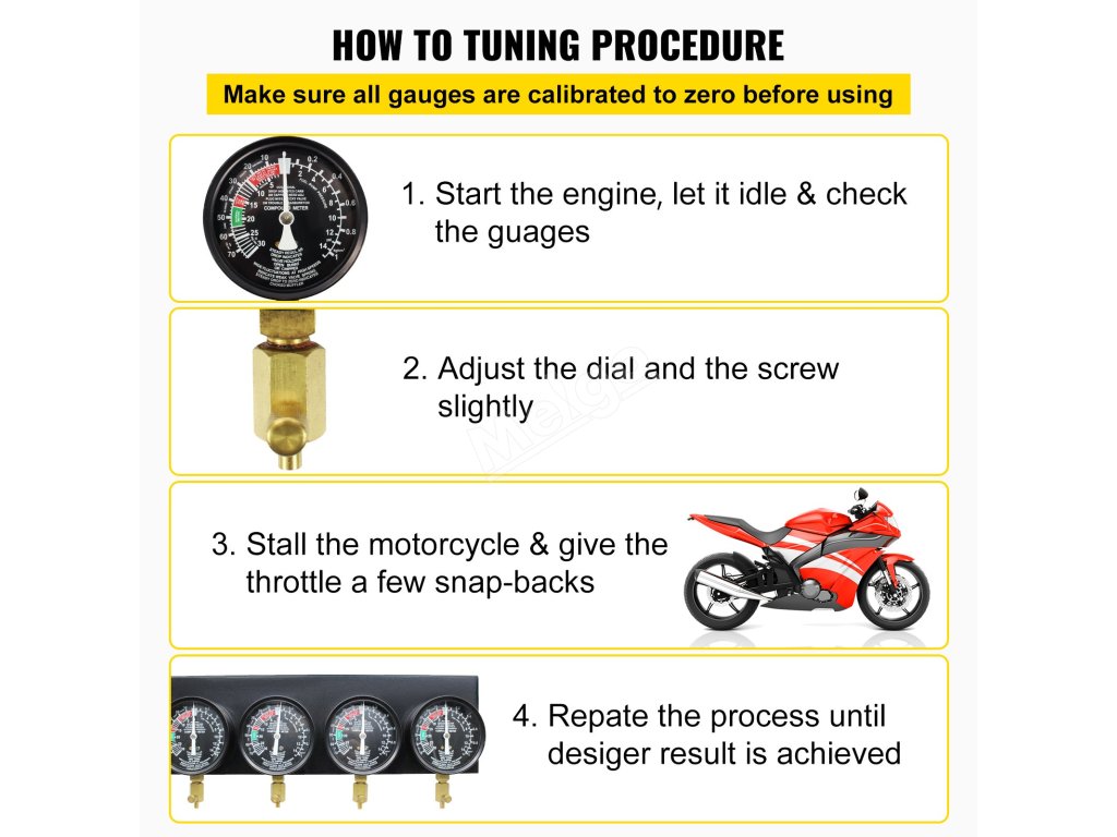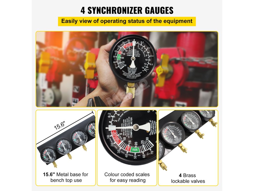 Synchronizační přístroj karburátoru umožňuje testovat tlak paliva přiváděného do motoru a kontrolovat, zda nejsou opotřebované nebo vadné díly, což si získává velkou oblibu v továrnách, dílnách, garážích i domácnostech.