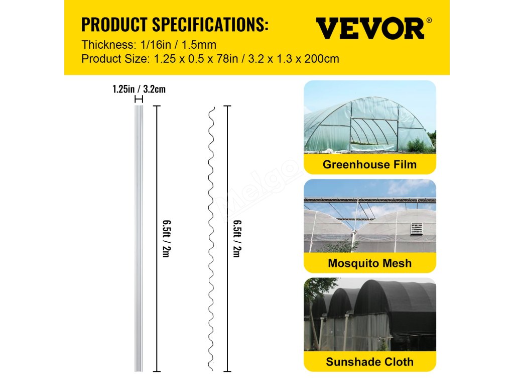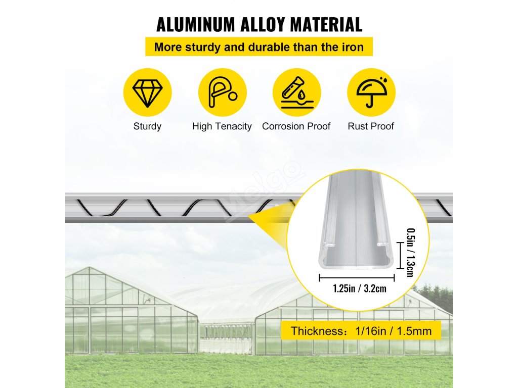Klikaté lanko a zajišťovací kanál z hliníkové slitiny jsou baleny po 40 kusech. Rozměry zajišťovacího kanálu (DxŠxV): 78x1,25x0,5"/200x3,2x1,3cm, tloušťka: 1/16"/1,5MM. Je robustní a odolný pro všechny vaše skleníkové potřeby.