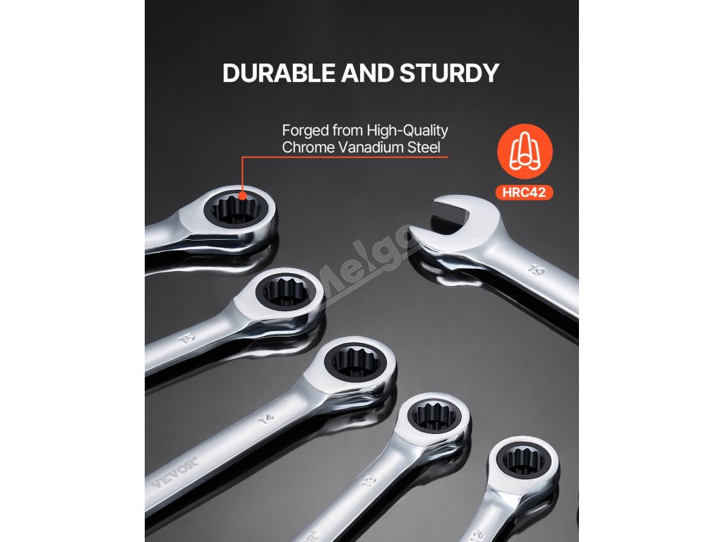 Naše sada ráčnových klíčů má ergonomický design, který zajišťuje pohodlné uchopení pro snadné používání.