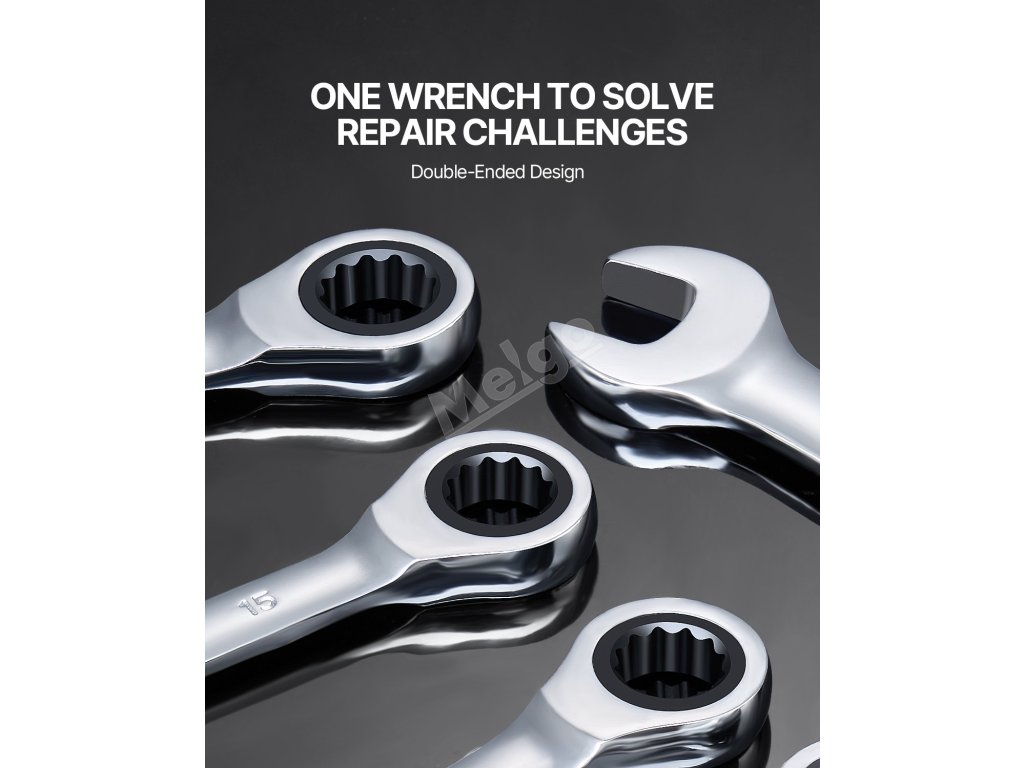 Tato sada ráčnových klíčů, která šetří práci, je ideální pro různé úkoly včetně oprav automobilů, mechanické údržby a oprav v domácnosti.
