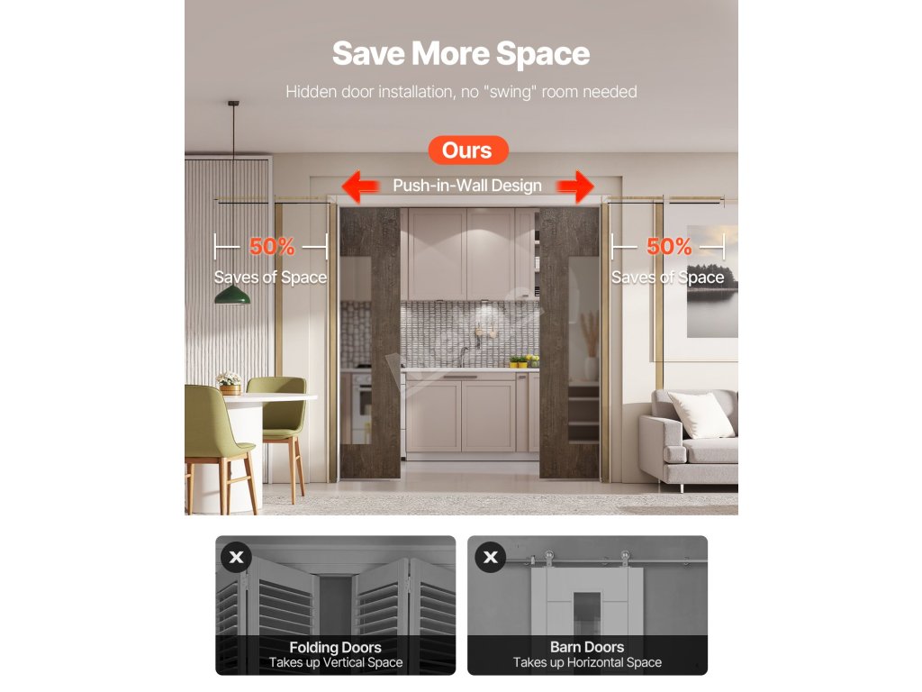 Pomalý zavírací mechanismus sady kapsových dveří zabraňuje hlasitým nárazům, zatímco tříkolová konstrukce zajišťuje rovnoměrnější rozložení hmotnosti, zvyšuje stabilitu a zajišťuje tiché posouvání.